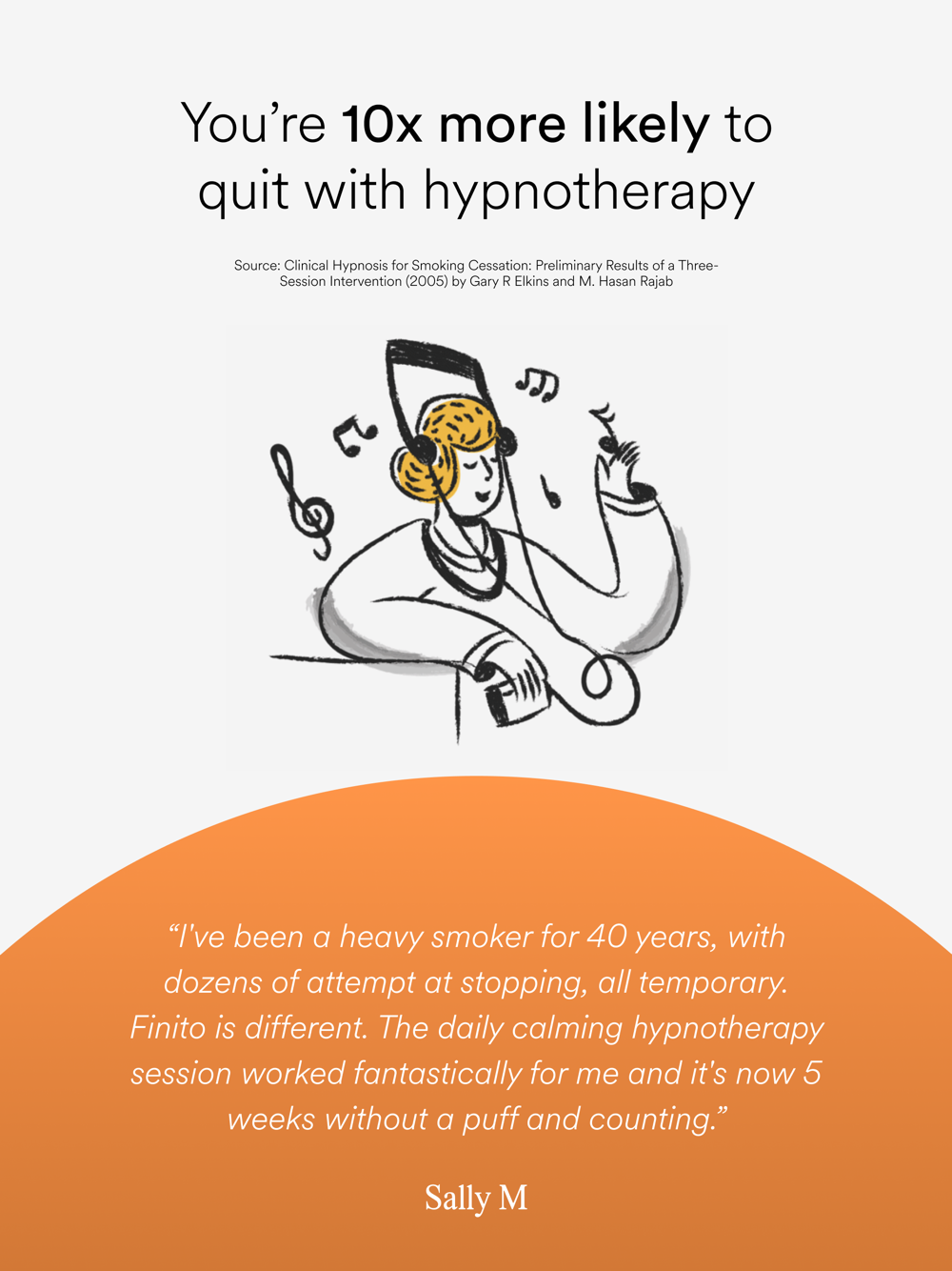 Finito is a self-hypnosis program that addresses the underlying reasons that cause you to smoke, providing hypnotic suggestions to the subconscious to manage cravings, emotions, and habits.