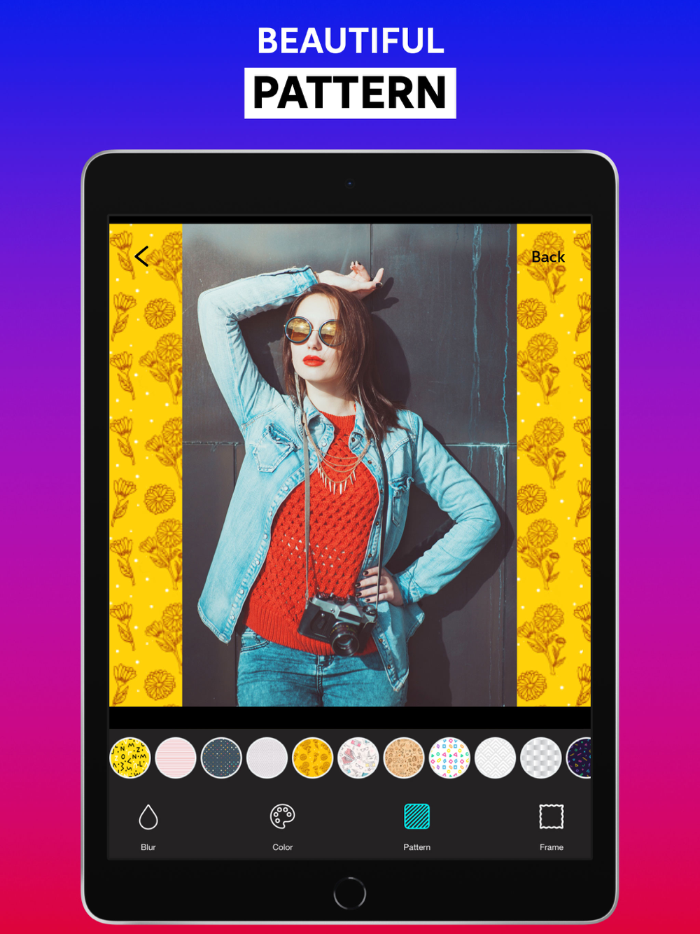 Post full size photos to social media without cropping! You can simply make a design using background colours, patterns and border styles. Easy!