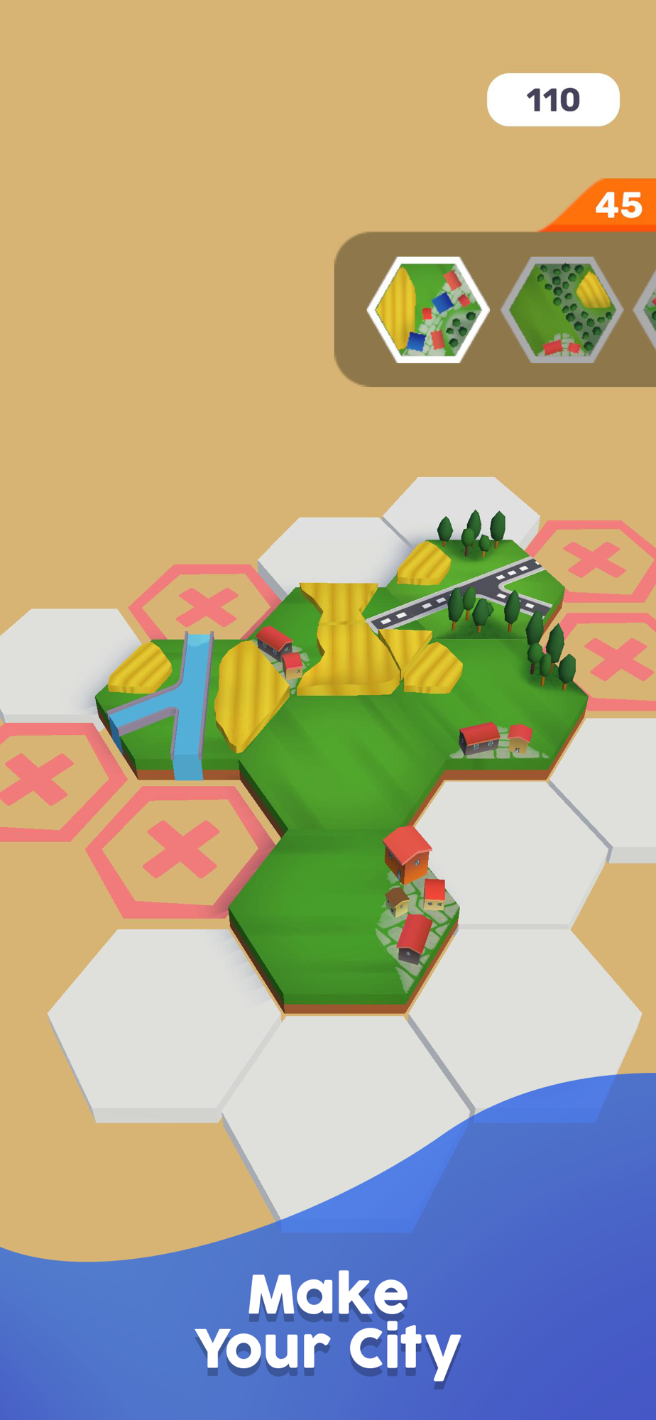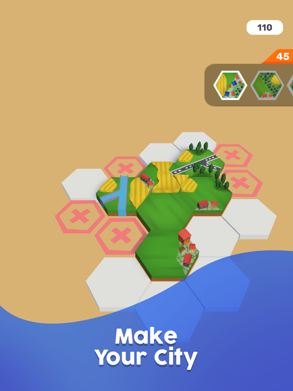 Your City is a game about relaxing yourself by placing hexagon tiles with landscapes of roads, woods, rivers and villages. It is a building type of strategy game; aiming to build a new growing world. With the on going new challenges and score system, you will achieve different goals in every level. The game is for everyone who needs a break from the noises and crowds of city life.