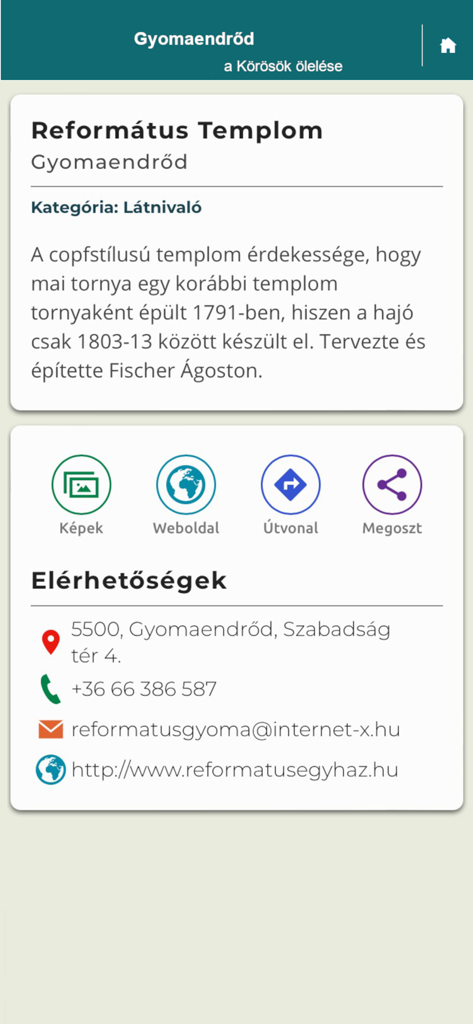 Ingyenesen letölthető, Gyomaendrőd, a Körösök ölelésében fekvő település turisztikai és általános információit tartalmazó applikációja.