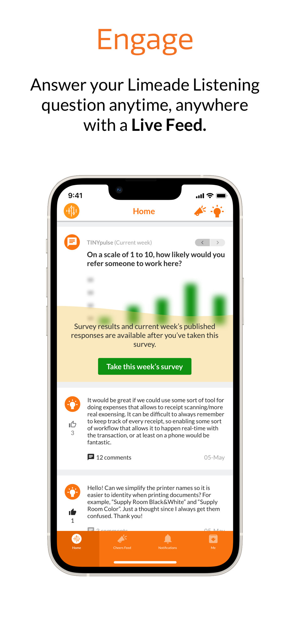 Limeade Listening (formerly called TINYpulse) is a leading employee engagement and feedback platform, offering innovative surveys, as well as channels for peer recognition and anonymous suggestions to help make employees feel valued and heard.