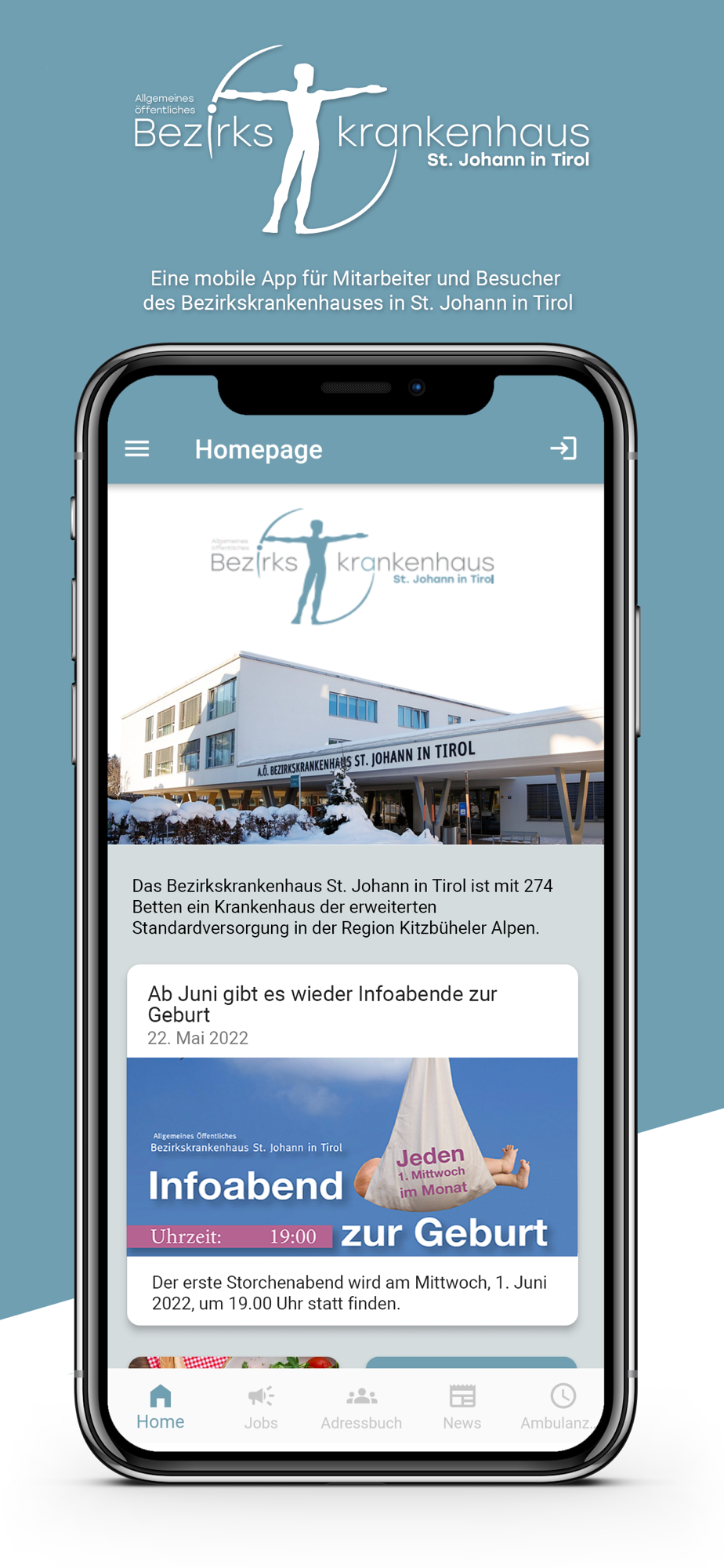 Dies ist die offizielle APP des Bezirkskrankenhaus St. Johann in Tirol. Unsere APP bietet aktuelle Rund ums Krankenhaus, Besuchszeiten und aktuelle Besucherregelungen, eine Push-Nachrichten Funktion sowie ein Verzeichnis über unsere Ambulanzzeiten. Wir stellen Ihnen wichtige Informationen aktuell und kompakt zur Verfügung. Suchen Sie eine neue Herausforderung? Dann sind Sie auf unserer Job Seite genau richtig!