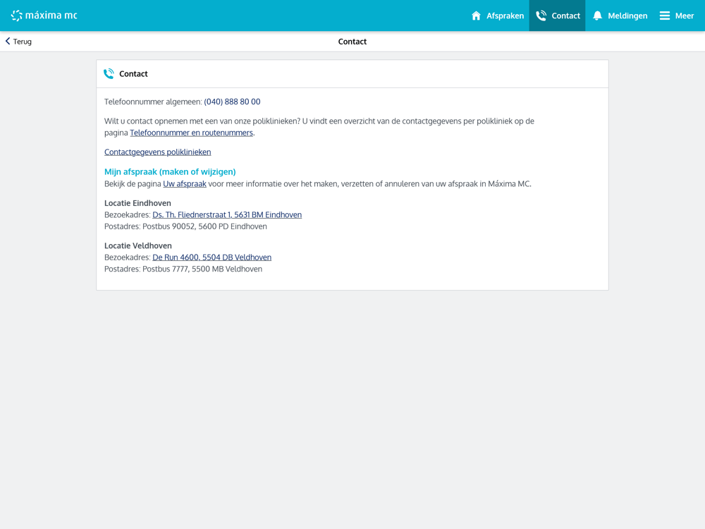 Mijn MMC is een gratis applicatie voor telefoon, tablet en desktop en is altijd en overal beschikbaar. Mijn MMC biedt u op een efficiënte wijze, alle informatie over uw behandeling en persoonlijke zorgtraject. Voor, tijdens en na de behandeling ontvangt u specifieke, relevante informatie in korte berichten en herinneringen in uw persoonlijke tijdlijn. Met de gebruikersvriendelijke app Mijn MMC bent u optimaal voorbereid op de behandeling en uw herstel.