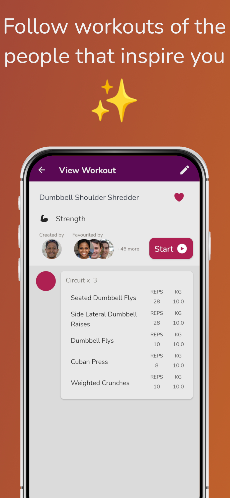 • Find new exercises in our growing, community-led exercise database, or create your own personal exercises.