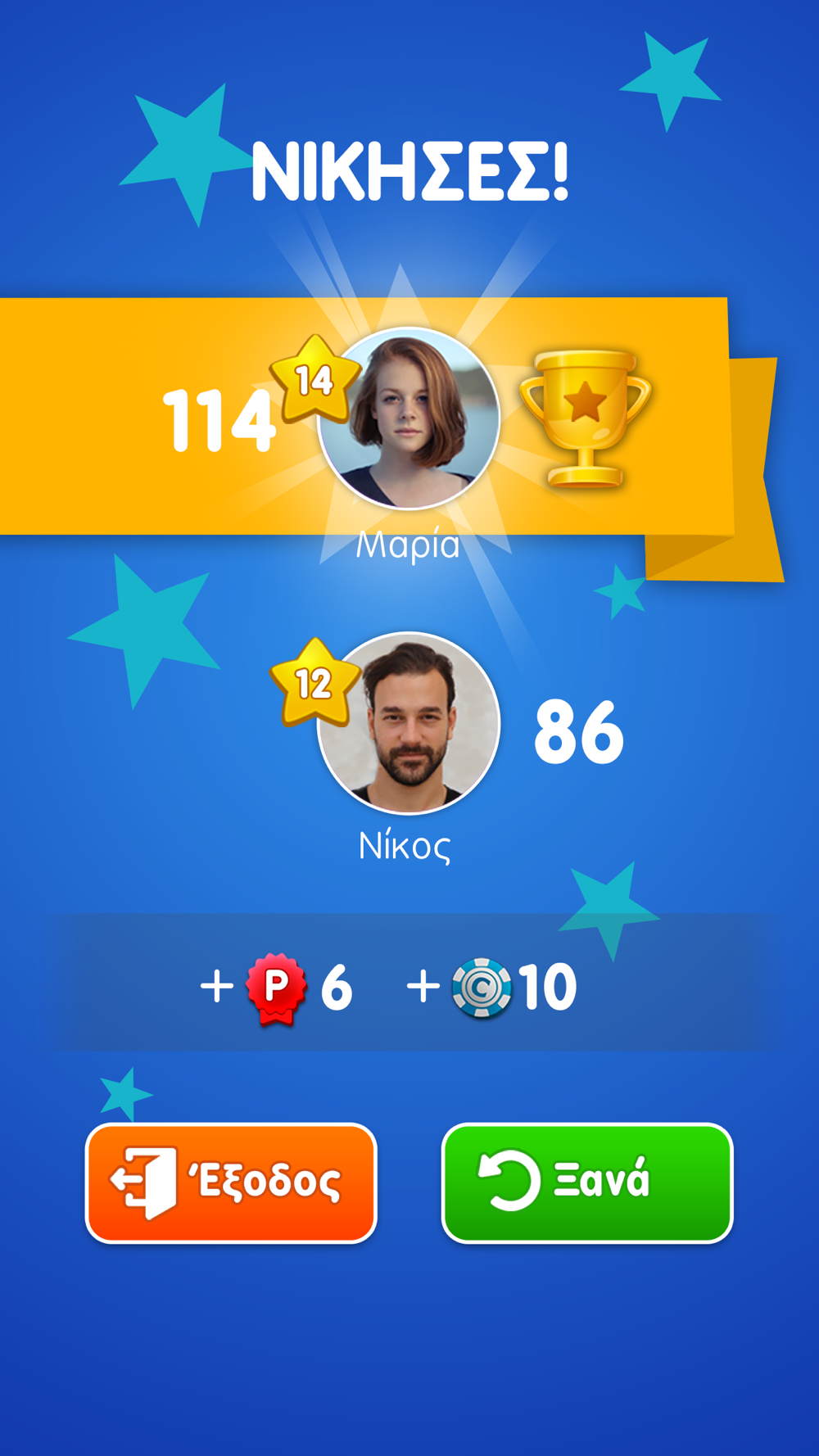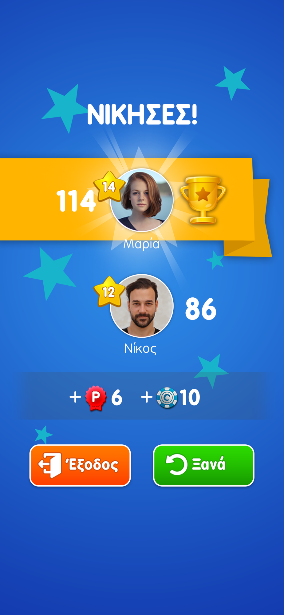 Κάθε γράμμα έχει μία συγκεκριμένη αξία (1, 2, 4, 8 ή 10 πόντοι) η οποία αναγνωρίζεται ανάλογα με το χρώμα του γράμματος σύμφωνα με το υπόδειγμα που υπάρχει δεξιά του τραπεζιού. Όταν σχηματίζετε μία λέξη, κερδίζετε τους πόντους που προκύπτουν από το άθροισμα της αξίας των γραμμάτων της. Αν κατά τη διάρκεια της τοποθέτησης της λέξης κάποιο γράμμα βρίσκεται πάνω στην ένδειξη 2Γ ή 3Γ, τότε αυτομάτως διπλασιάζεται ή τριπλασιάζεται αντίστοιχα η αξία του γράμματος στον υπολογισμό των πόντων. Με την ίδια λογική, αν οποιοδήποτε γράμμα της σχηματιζόμενης λέξης βρίσκεται πάνω από την ένδειξη 2Λ ή 3Λ, τότε αυτομάτως διπλασιάζεται ή τριπλασιάζεται αντίστοιχα η αξία ολόκληρης της σχηματιζόμενης λέξης στο υπολογισμό των πόντων. Οι ενδείξεις 2Γ, 3Γ, 2Λ και 3Λ ισχύουν μόνο κατά τον σχηματισμό της πρώτης έγκυρης λέξης. Αν τροποποιήσετε κάποια λέξη που ήδη περιείχε κάποια τέτοια ένδειξη δεν ξαναπαίρνετε το bonus. Αν κατά την τοποθέτηση των γραμμάτων προκύπτουν παραπάνω από μία έγκυρες λέξεις (οριζόντια και κάθετα) παίρνετε τους πόντους από όλες τις νέες σχηματιζόμενες λέξεις μαζί με τα πιθανά bonus από τις αντίστοιχες ενδείξεις. Αν κατά τη διάρκεια ενός παιξίματος κάνετε χρήση και των 7 γραμμάτων που διαθέτετε, τότε πέρα από τους πόντους που παίρνετε με βάση τους πιο πάνω κανόνες, λαμβάνετε επιπλέον 50 πόντους σαν bonus.
