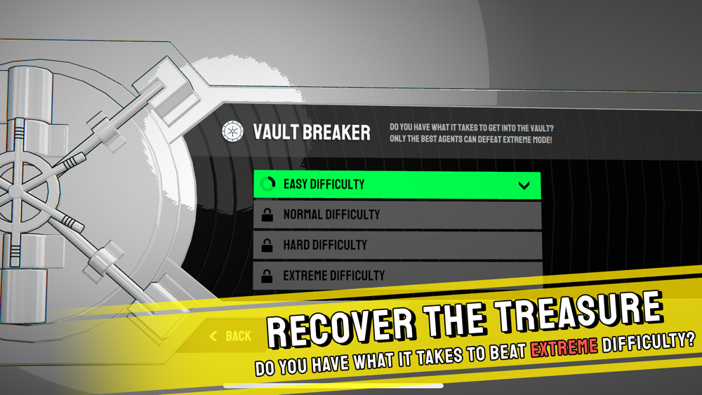 Extreme - The ultimate challenge! Only 1 life for the entire game, number bonds up to 20, 5 vault doors to break through (randomly chosen), and even more questions shown on each vault... plus, the bad guys have activated the self-destruct timer! Get bonus time for each correct answer! Accuracy and speed is key! Only the best Number Bond Agents can reach the centre of the vault in time to recover ALL of the stolen treasure!
