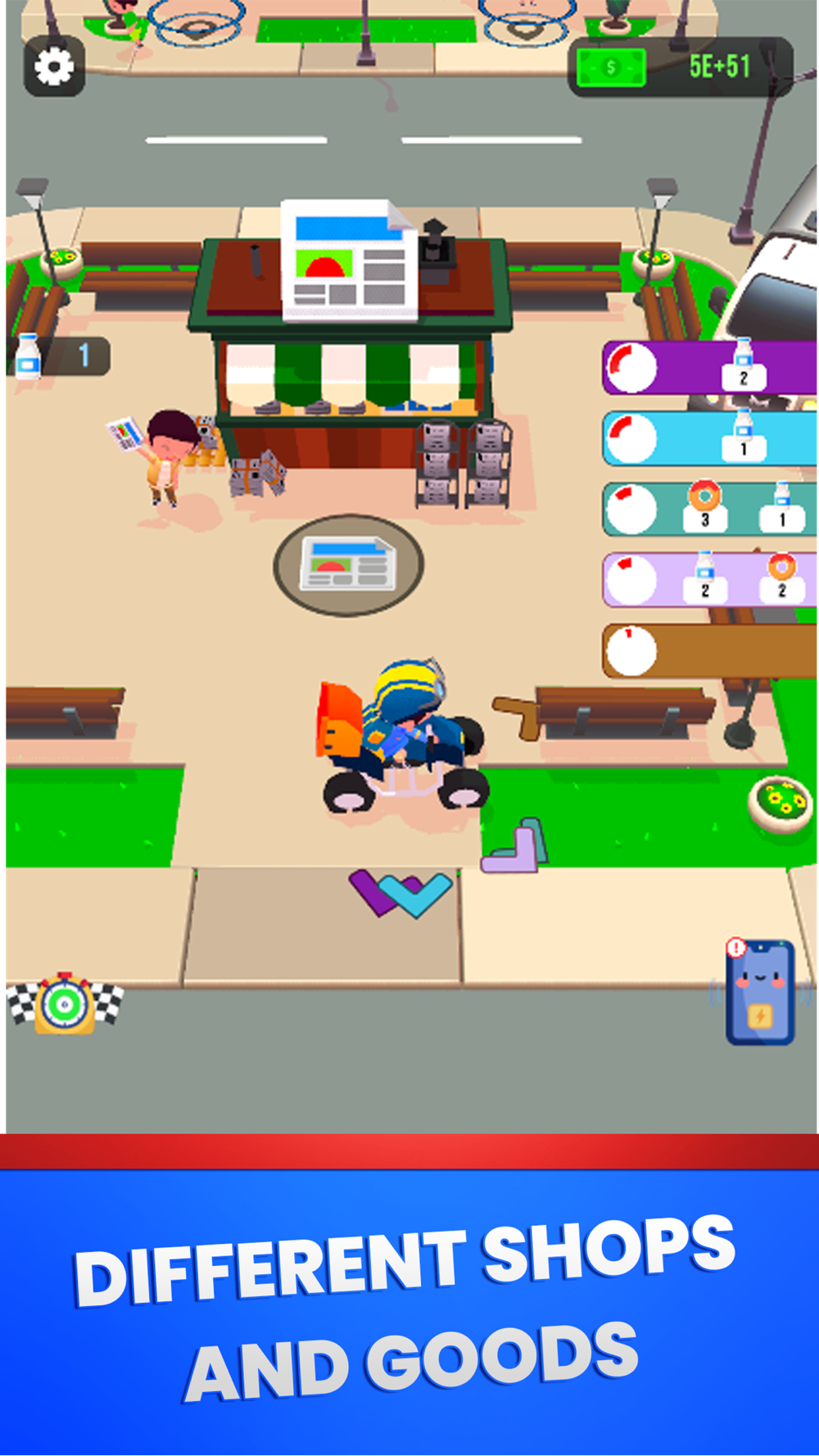 You start delivering goods to local people by yourself. Hire couriers and upgrade them. You can buy faster vehicles.