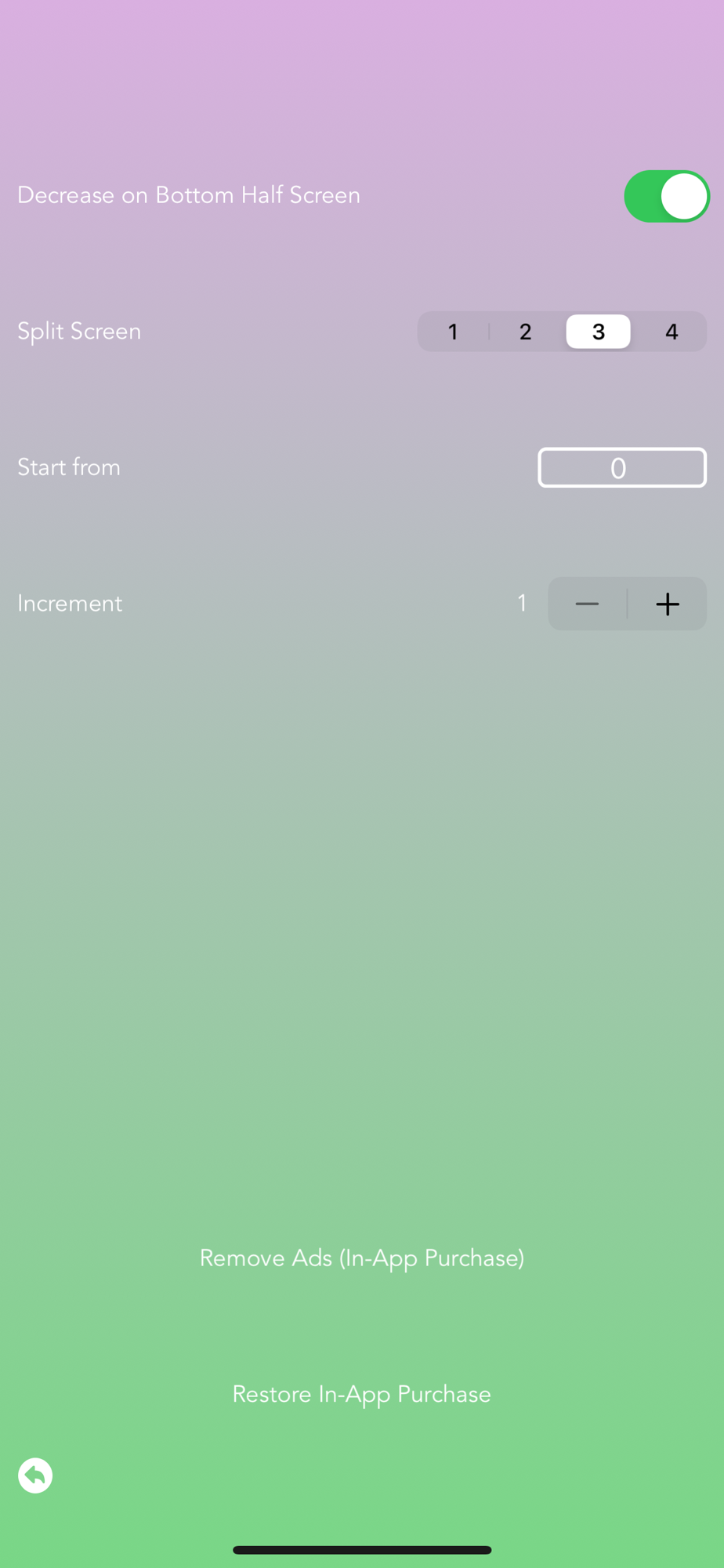 ・count down when tapped on bottom half of the screeen(you can turn it off if you want)