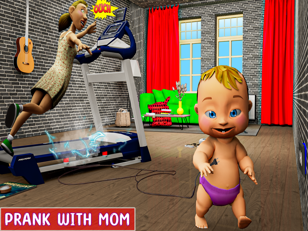 An amazing naughty happy baby game where you can make pranks in the home with the family members like a mother stunt. Where you will be playing as a naughty single baby who is very active and always pranks his sister and brother in a kid simulator game. Kid simulator games are so much fun if you play all the levels. find and break all the vases in the house of these virtual games without making any noise otherwise, your grandmother who is sleeping in the living room will punish you. This is one of the best baby simulator games with all the madness and fun you will ever find in the store. sneak into your mom's room and color paint her dress, which she is going to wear for a party.