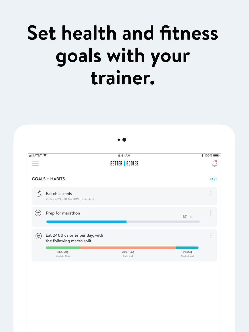 Through the app, you can access your customized training program and schedule, and communicate directly with your trainer. You can track your progress to see how far you've come in your workouts, habits, and overall goals. - Connect to wearable devices like Apple Watch (synced to Health app), Fitbit and Withings to sync body stats instantly. Better Bodies Coach is your new personal trainer, teacher, and accountability partner in your fitness journey to #FindYourBetter.