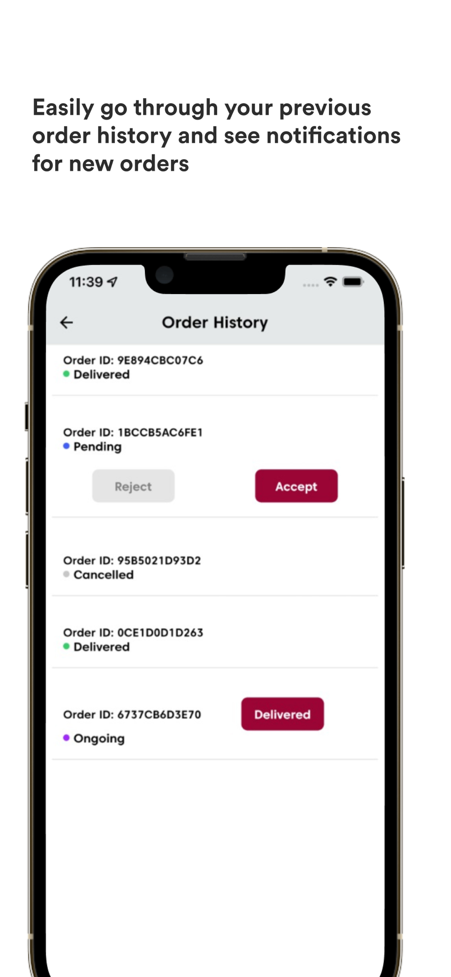 Step 6. Users will use the user app to make orders and you will receive notifications, update the status accordingly on the rider app and deliver