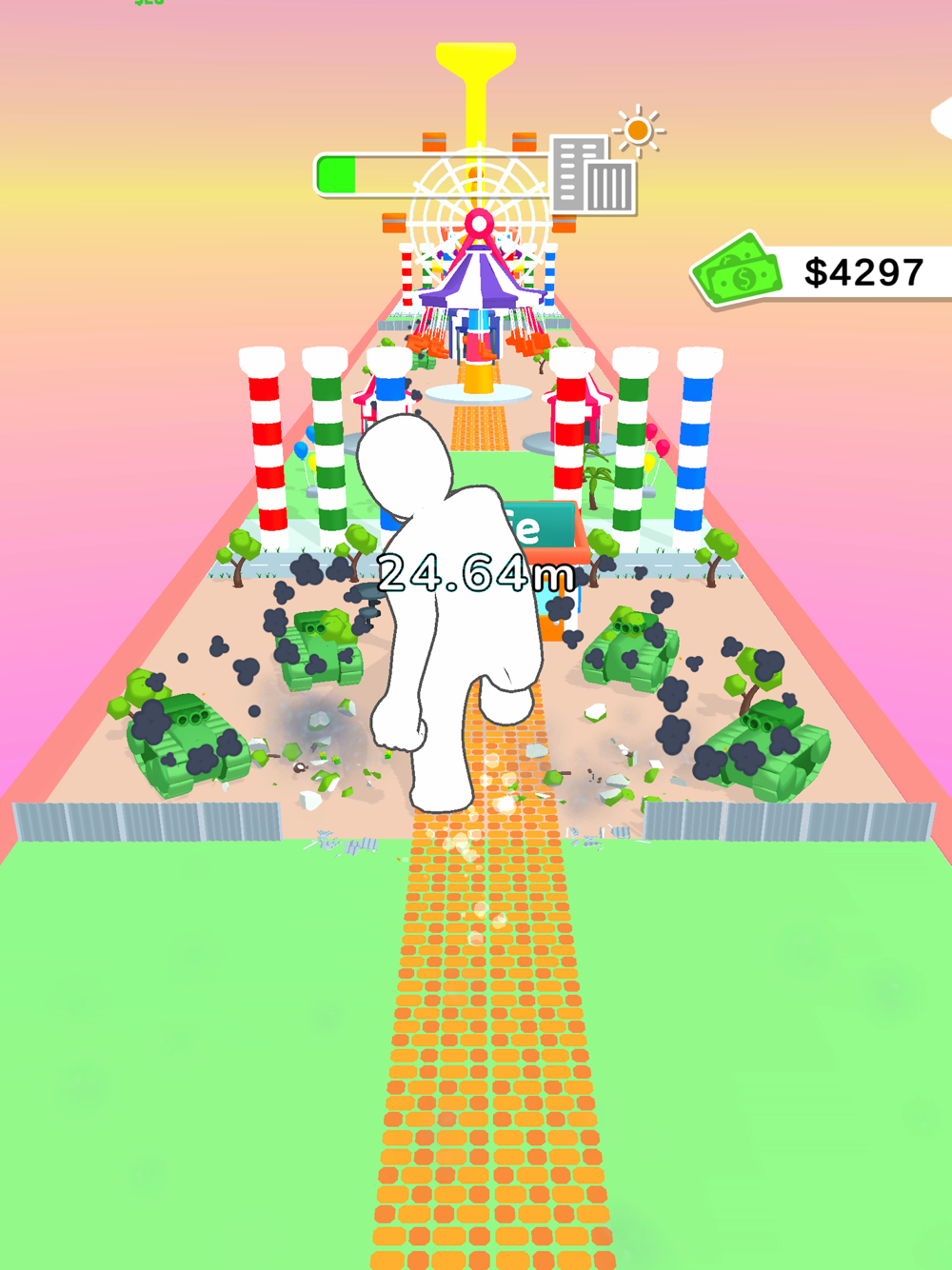 Smash it all and earn money! Upgrade your way through various landscapes.