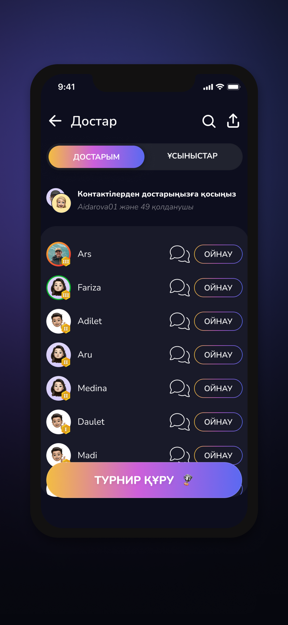 Прояви свои знания и остроту ума, отвечая на увлекательные вопросы из более чем 40 различных категорий! AQYL BATTLE расширит твои границы знаний во множестве областей: логика, история, искусство, спорт, логотипы, медицина, фильмы и сериалы, и многое другое!