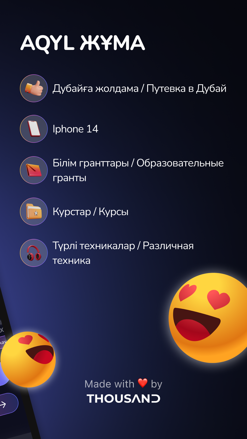 AQYL BATTLE-да ойнап қана қоймай, жинаған ұпайларды "AQYL ЖҰМА" онлайн жəрмеңкесінде бағалы сыйлықтарға алмастыруға мүмкіндік бар.