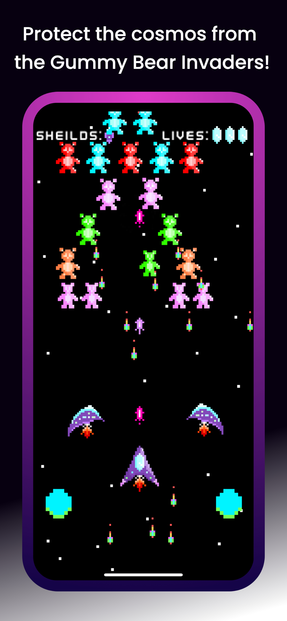 A new twist on a game that's withstood the test of time, Gummy Bear Invaders has more in store and more to come!