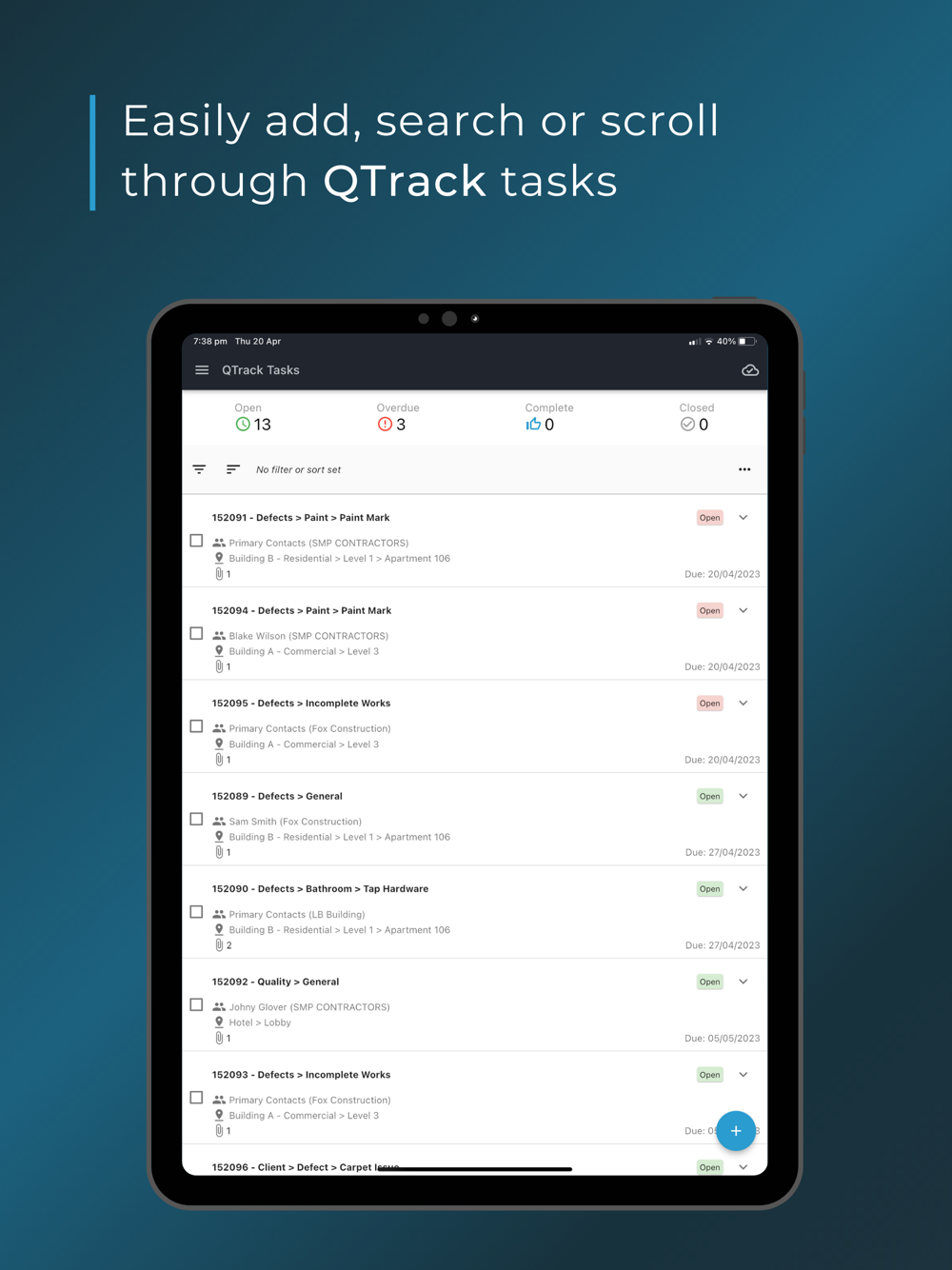 From developer, to contractor, to consultant, each task owner retains a measure of control and visibility; and can monitor, complete, close, reopen, and report on their inspections and tasks