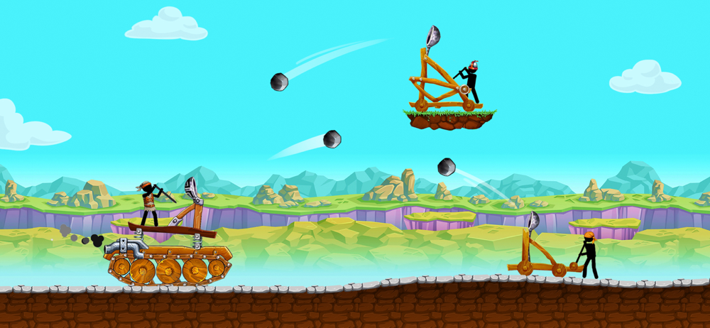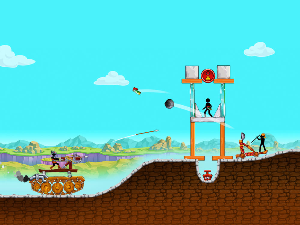 Stickman was a lot of people, and an archer and a spear thrower and even a Viking, a good story happened with a Catapult. But today our stickman received a Tank and an amazing story of confrontation with enemy battle vehicles on the hills awaits him!