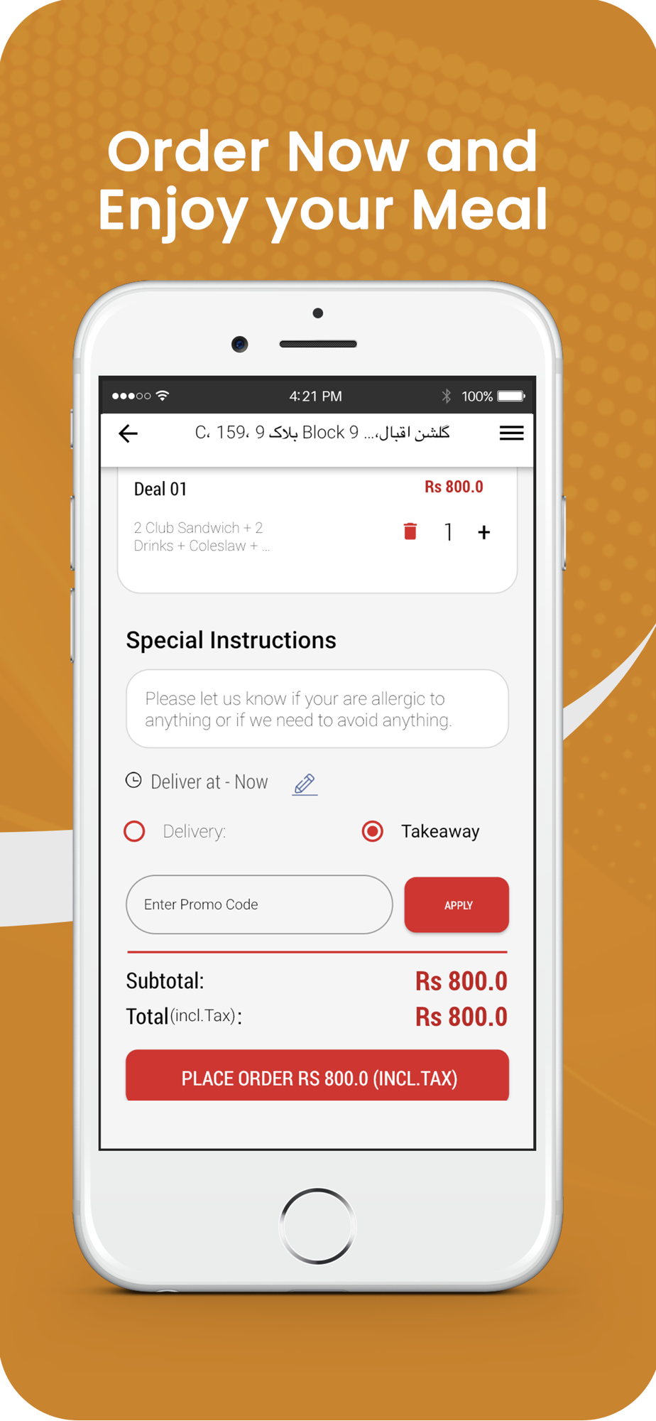 Our menu cover all your food desires. Just install our app to place an order for Take Away & Home Delivery.