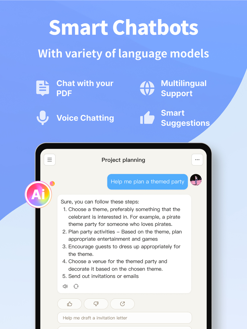 Through our Hayo AI robot, you can experience a variety of functionalities such as AI games, AI virtual companions, writing assistant, document chat, AI prompt optimization and more. Hayo AI integrates dozens of famous AI models like GPT-4/GPT-3.5, Claude 2, GooglePalm, Wenxin-Yiyan, MiniMax, ChatGLM-Pro, etc. and can switch quickly among these models. Using these AI models, you can learn new knowledge anytime and anywhere, reducing the cost of learning.