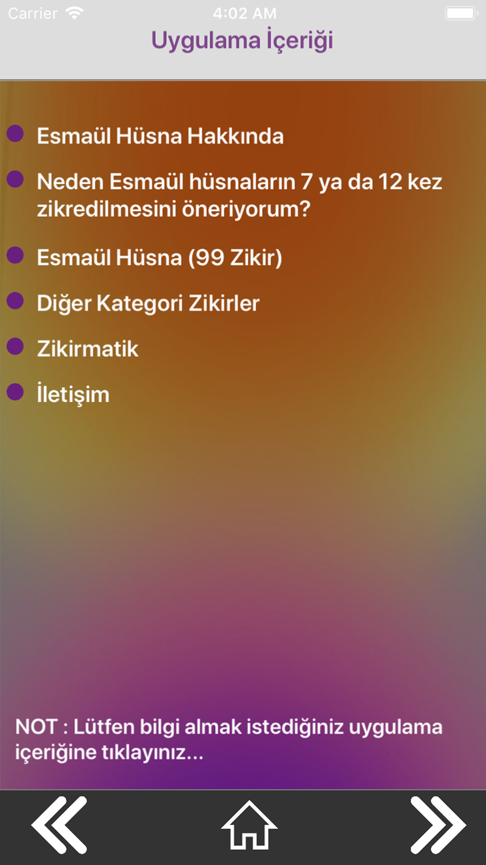 Bu uygulama ile Esmaül Hüsna zikir çalışması yaparken aynı zamanda her Esmaül Hüsnaya ait dua ve o konuda gerçekleştirmeniz gereken ödev bilgisi de sizlere sunulmaktadır.