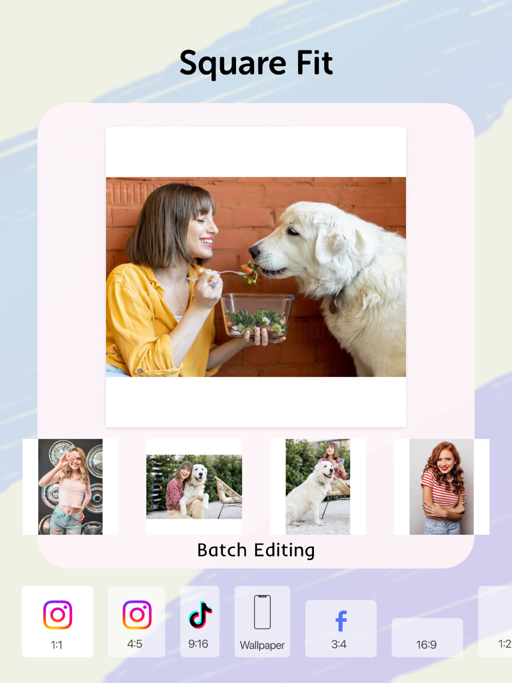 Add a stylish background to the photo, choose a right ratio fiting for social media, then post no crop photo on Instagram or other social platforms. Batch processing supported.