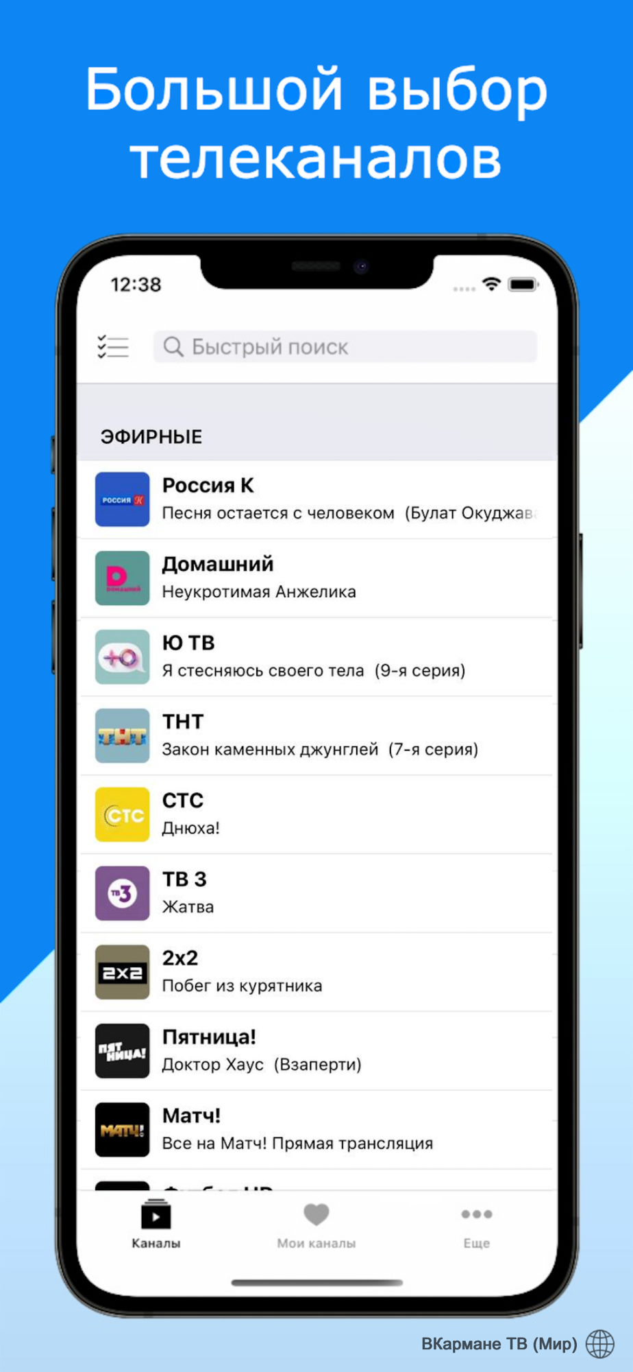 С «ВКармане ТВ (Мир)» Вы всегда сможете смотреть цифровое российское (а также СНГ) телевидение везде, где захотите. Вы не пропустите любимую ТВ-передачу или красивый и важный момент в футбольном матче, ведь для большинства каналов предусмотрен архив, а также пауза или перемотка прямого эфира до 10 часов назад (timeshift). Также можно послушать радио. «ВКармане ТВ (Мир)» не позволит Вам заскучать!