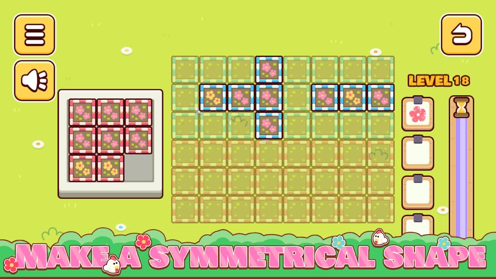 Your goal is to create a symmetric picture to the other side, and finish 4 rounds before time runs out to complete each level.