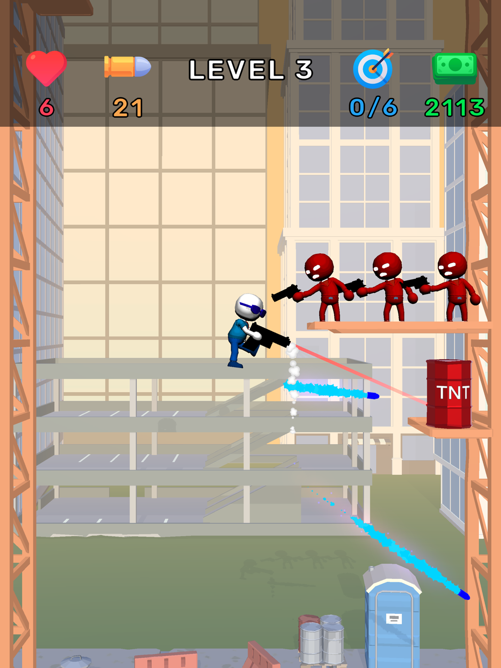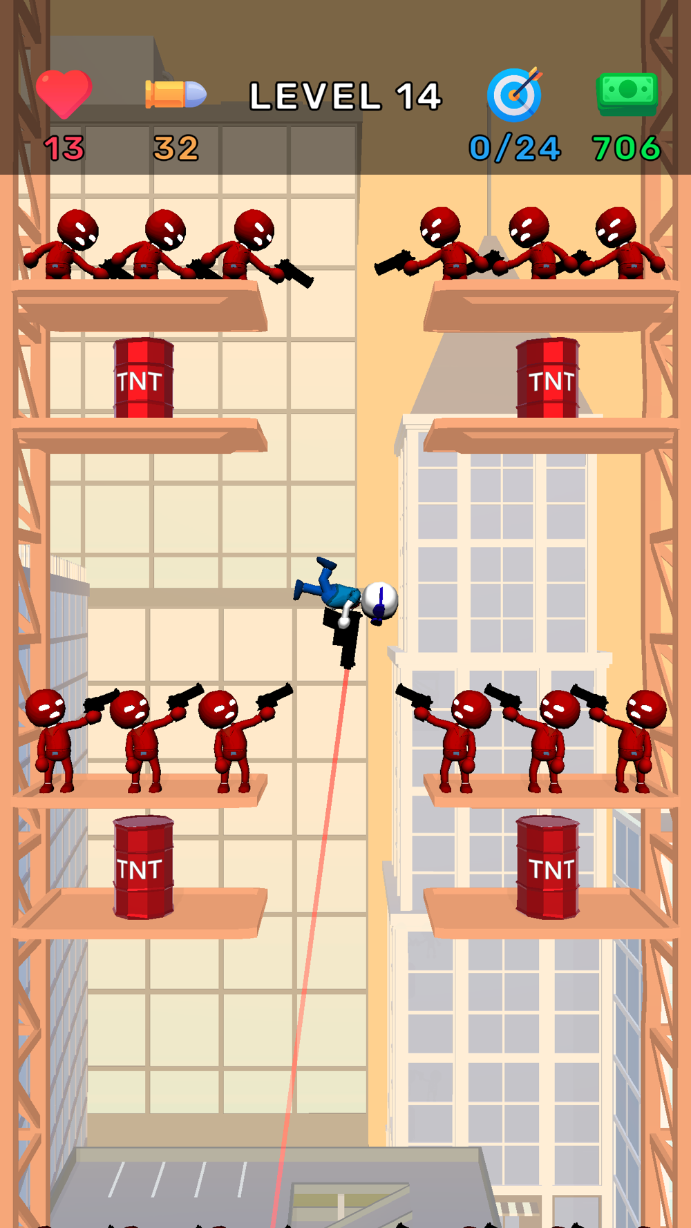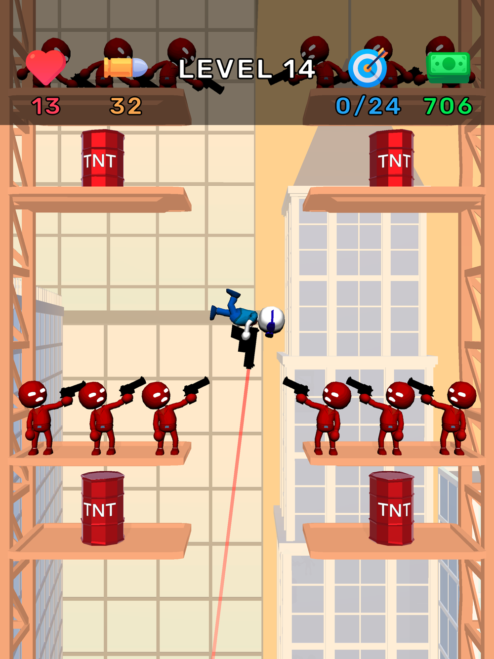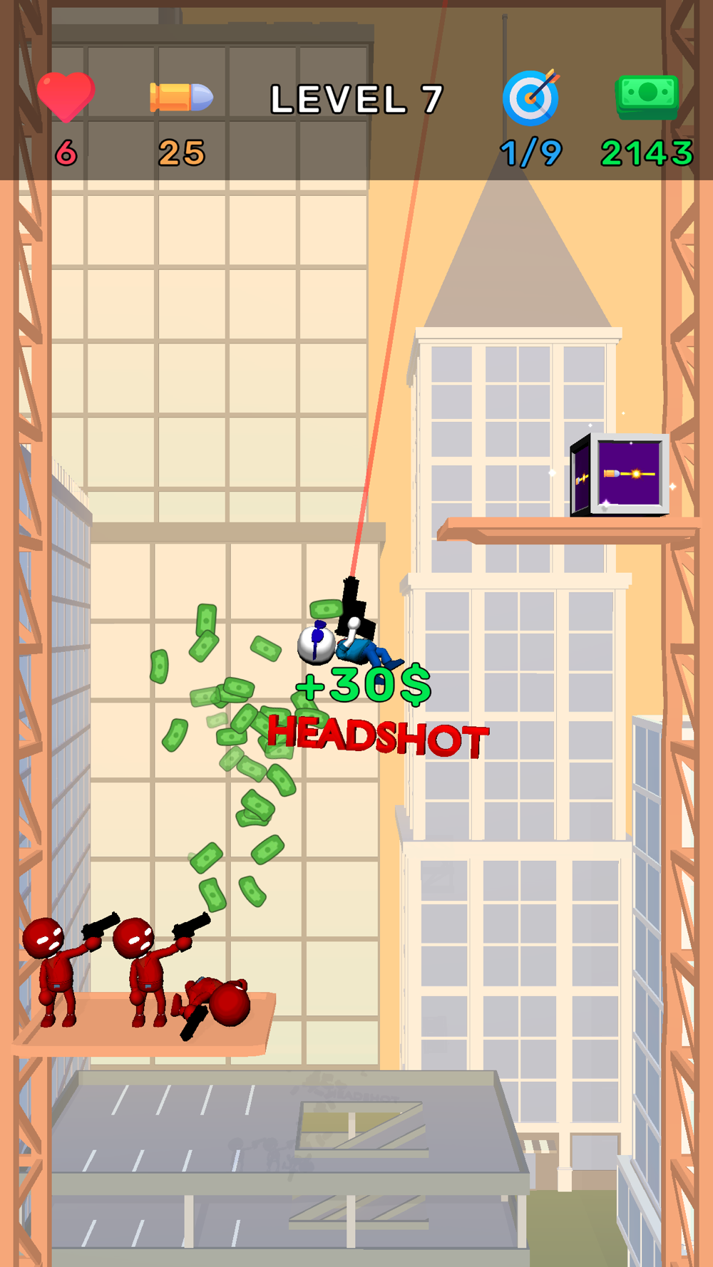 You're a hired hitman who has to take out his enemies! Shoot your enemies, fly epically across the map, collect bonuses, and upgrade your hero and his weapon!