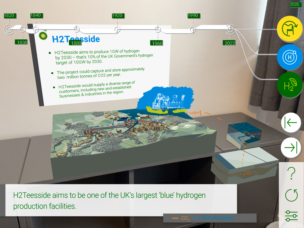 Use the power of augmented reality to peer into the past and see how the region of Teesside became a world-leading industrial powerhouse. Watch as the railways and shipping links evolve into a thriving steel industry in front of your very eyes, and on your kitchen table. Then discover how that heritage paved the way for a lower carbon future, with world-first carbon capture and hydrogen projects, led by bp.