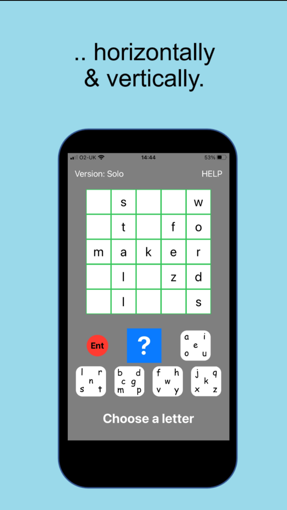 Complete the grid and score points for 3, 4 & 5 letter words both horizontally & vertically.