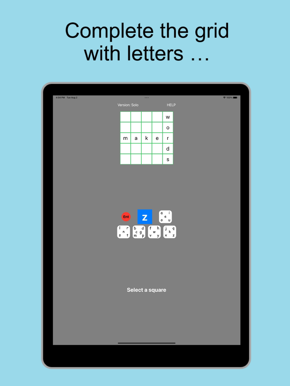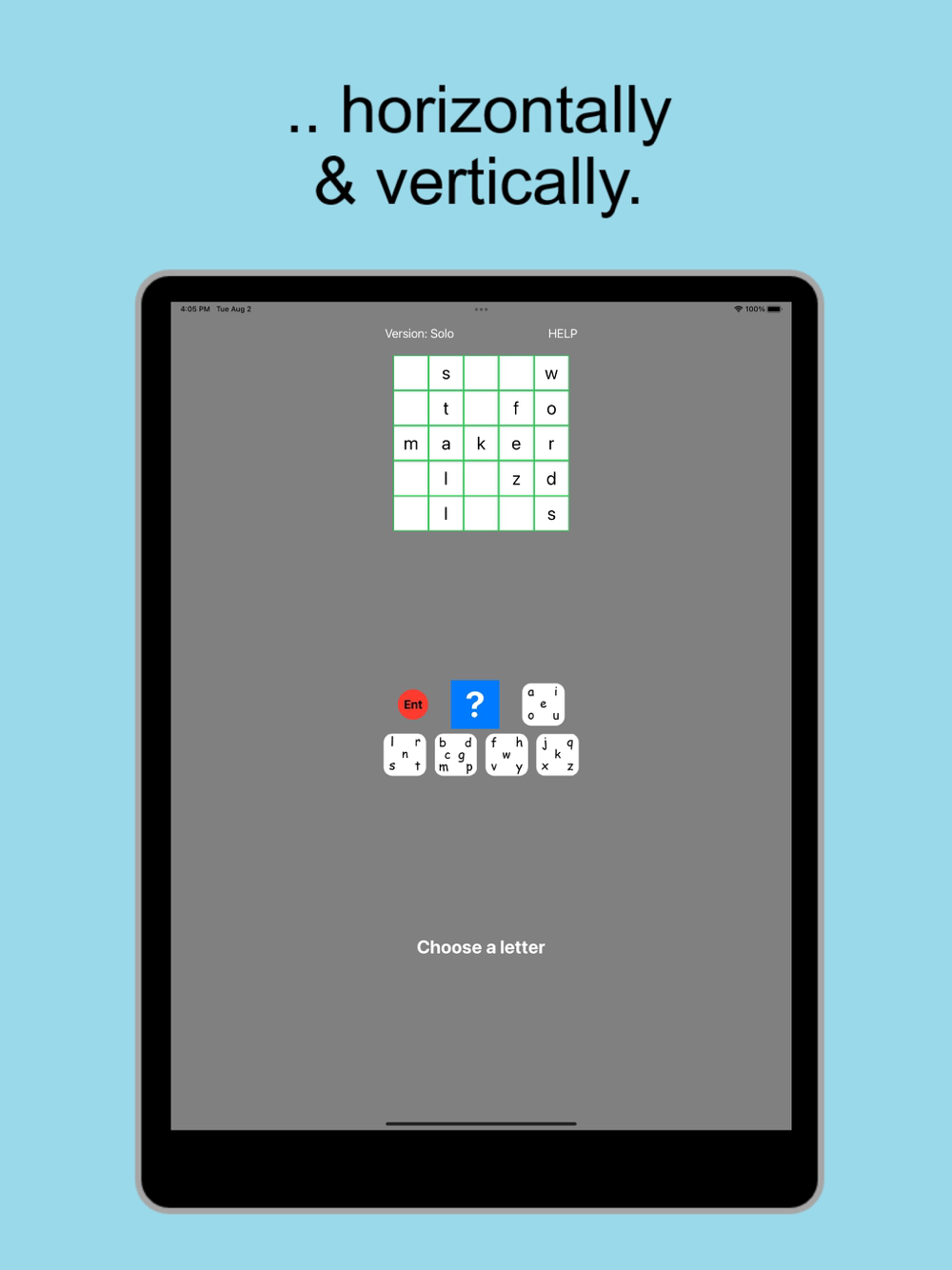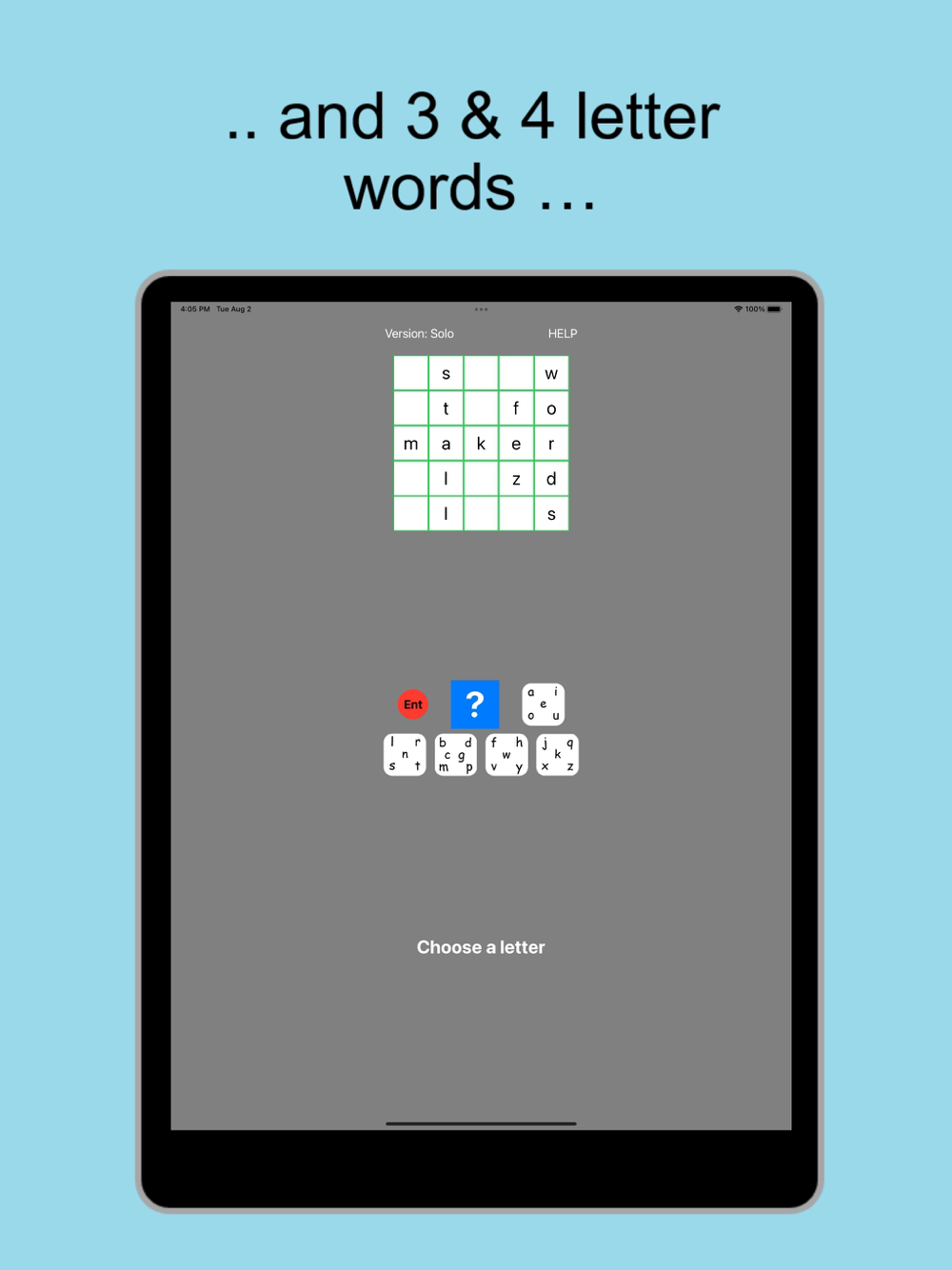 Three different modes of the game allow you to pick letters or have some (or all) picked randomly.