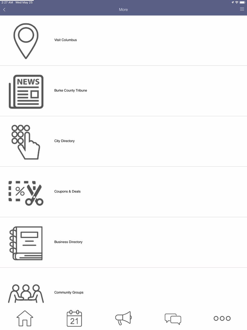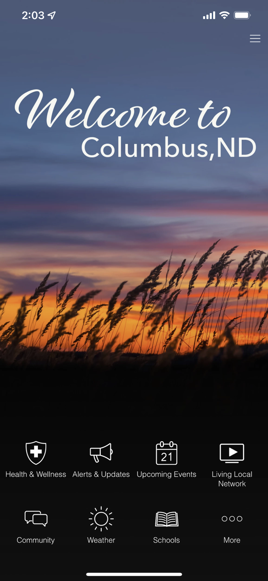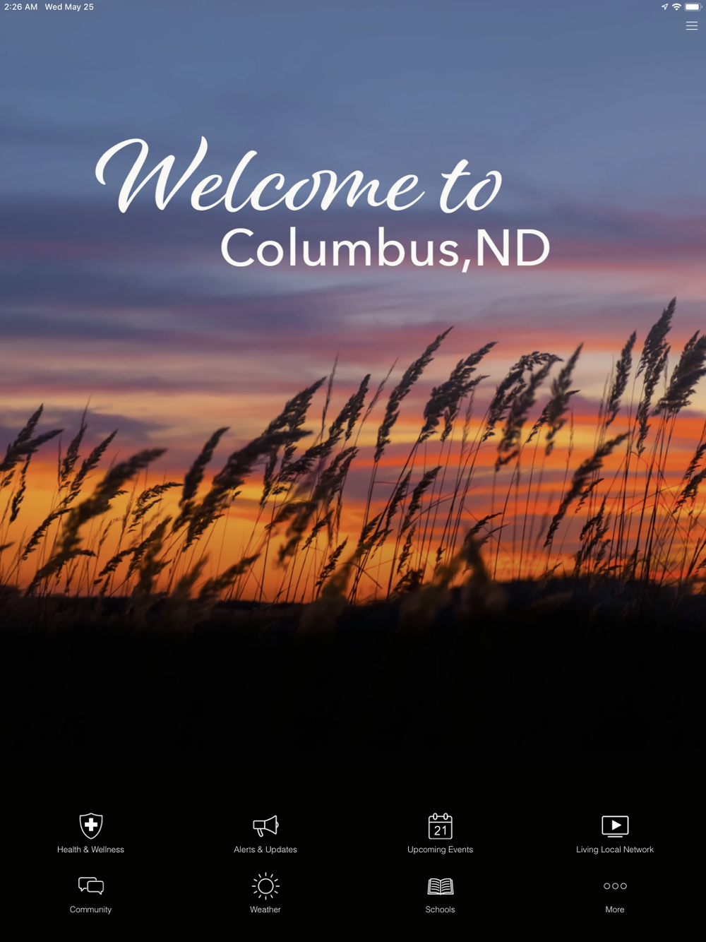 The Columbus app is an app designed for residents and visitors of Columbus, ND. The app is a community-reflective app that connects and empowers Columbus residents and visitors with critical, timely and relevant content they want to see. Content includes but not limited to articles, events, videos and resources.