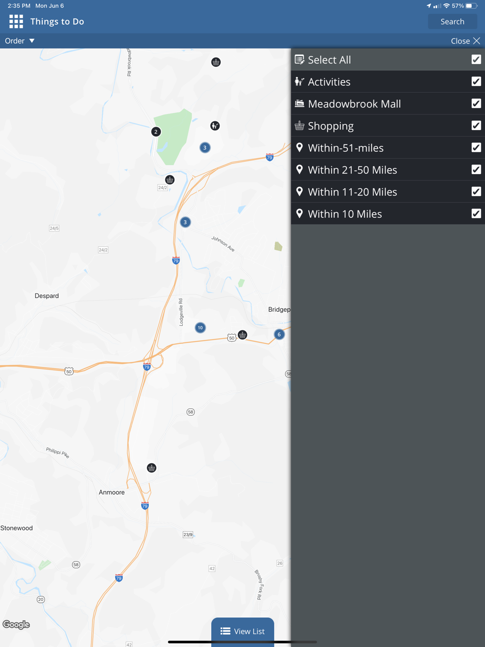 Centrally located in the heart of West Virginia, Bridgeport is a hub for meetings, conferences, youth sports, shopping and dining. With easy access from Interstate 79 and Route 50, Bridgeport is a convenient drive from almost any location in West Virginia. The Visit Greater Bridgeport, WV app is designed to help you explore all our destination has to offer.