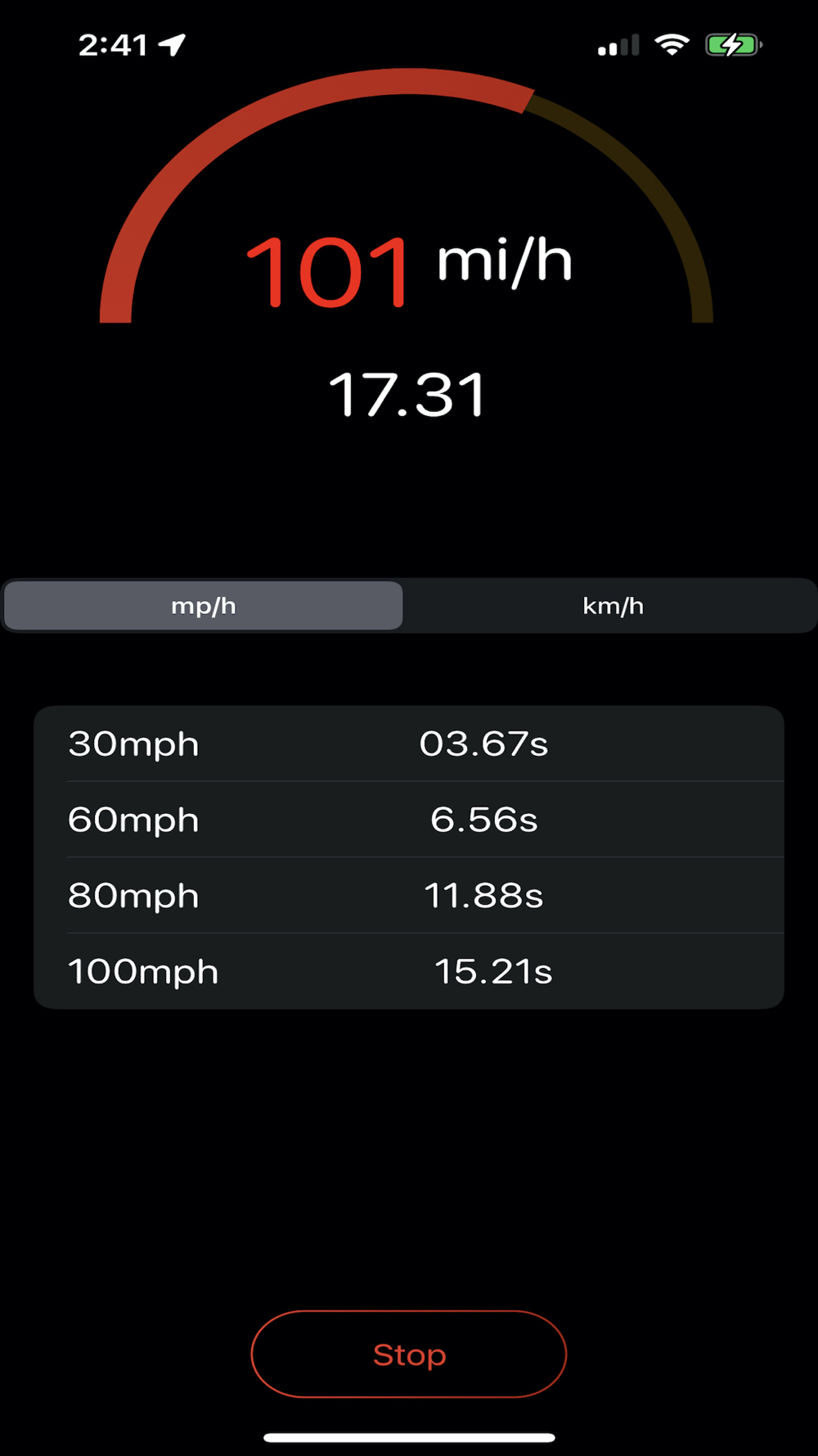 Measures speed from 0 to 30, 60, 80 and 100 mp/h. Measure speed from 0 to 50, 100, 135, 160 km/h.
