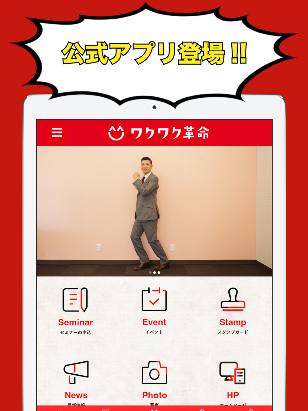 「ワクワク革命」公式アプリでは、セミナーやイベントの最新情報やアプリ限定のお得なクーポンを随時配信しています。