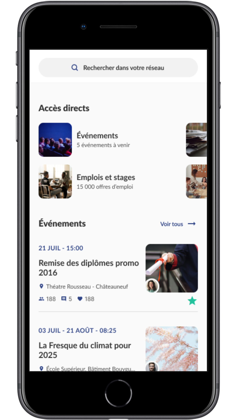 Thanks to this application you can easily access the directory of graduates and students, consult job offers and apply, register for an event, follow the news of the Dauphine community...