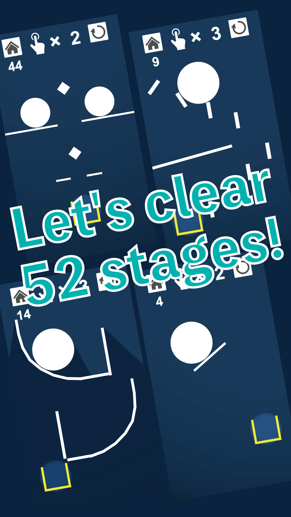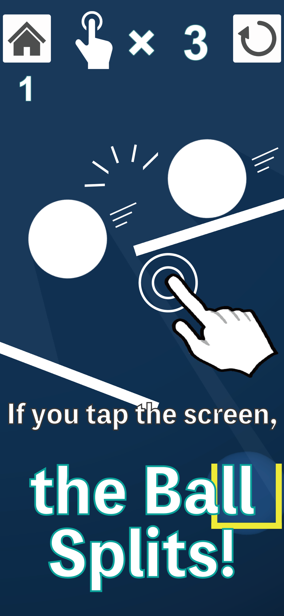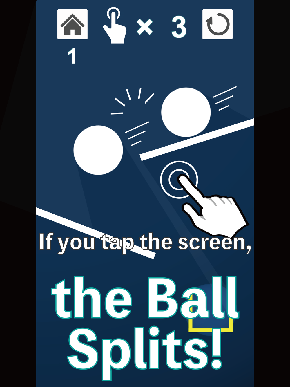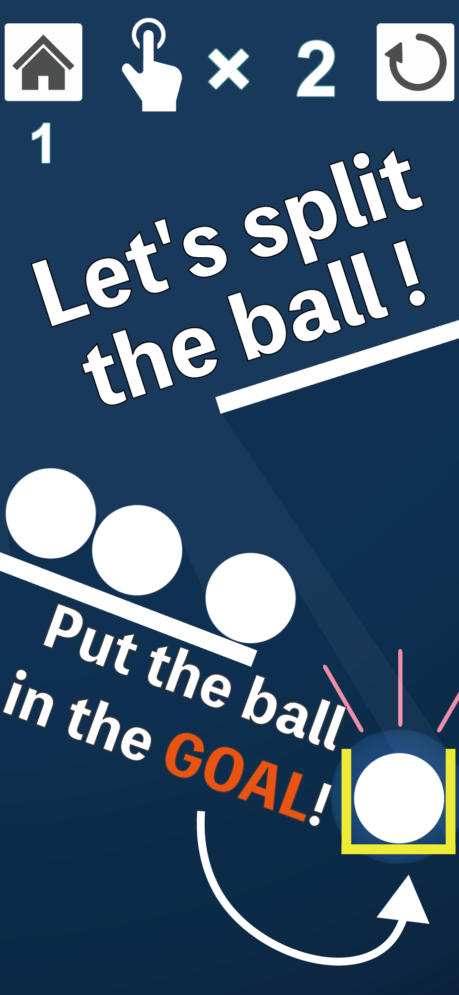 ・Tap the screen to split the ball into two pieces, and aiming the yellow goal to clear the stage.