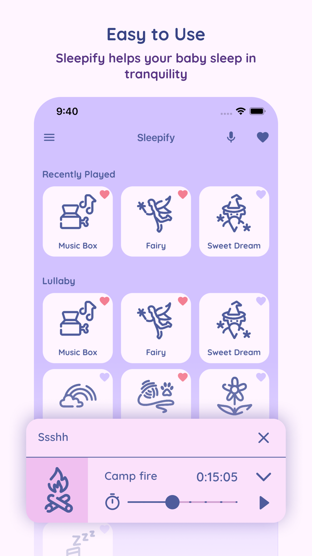 - Sleepify helps your baby to develop healthy sleep patterns with its hand-picked soothing sounds