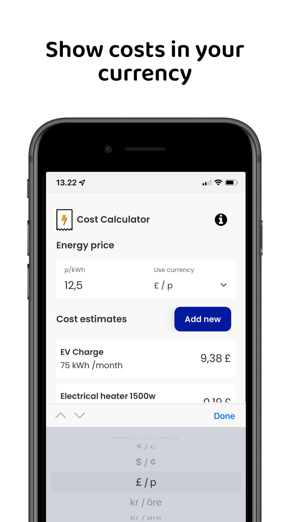 Cost can be shown by: 10min, hour, day, week, year, per time, fully charged