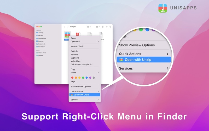 Unzip is a management tool that focuses on quickly decompressing and compressing files! This is a very fast and very easy to use zip file management App.