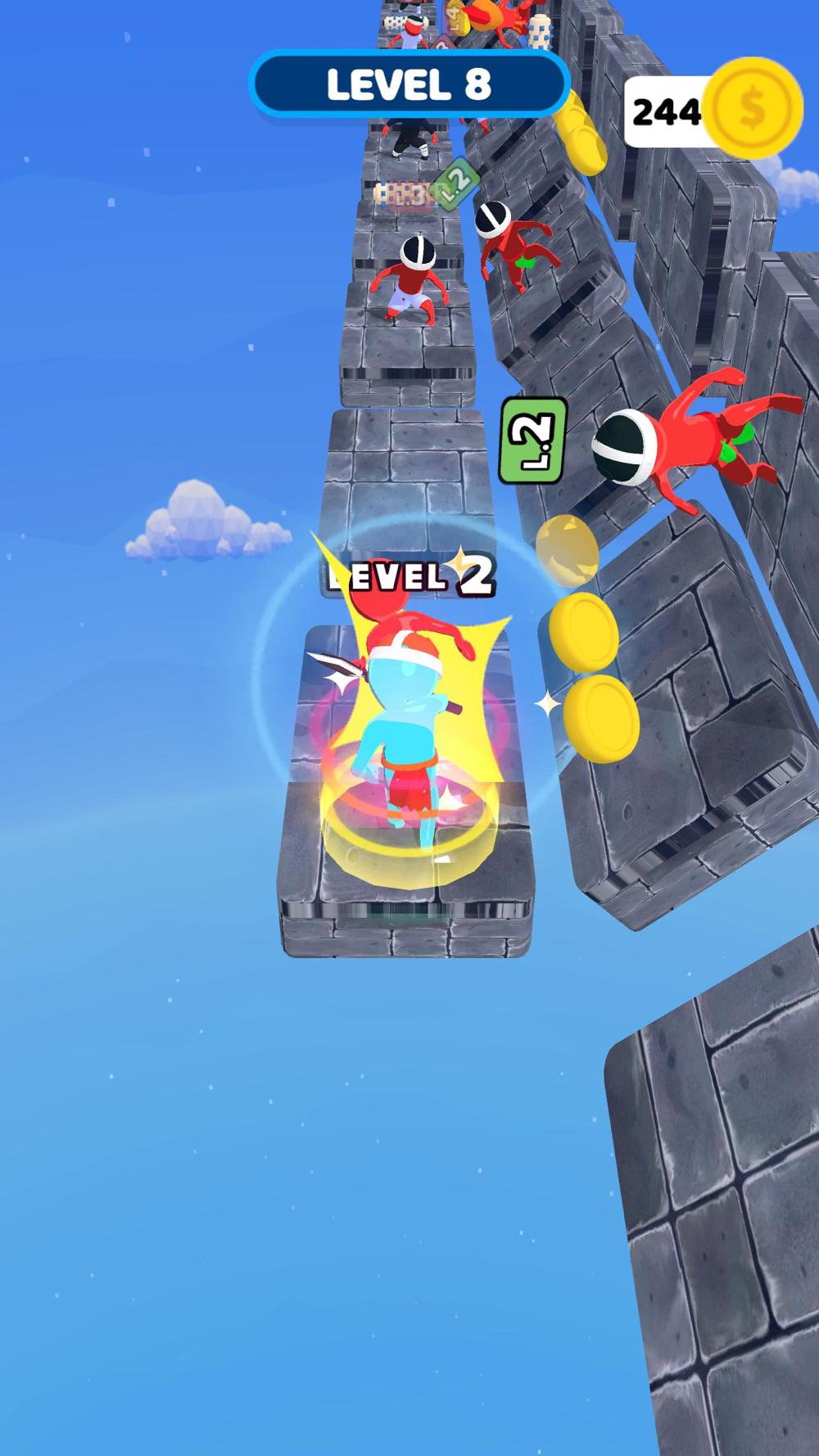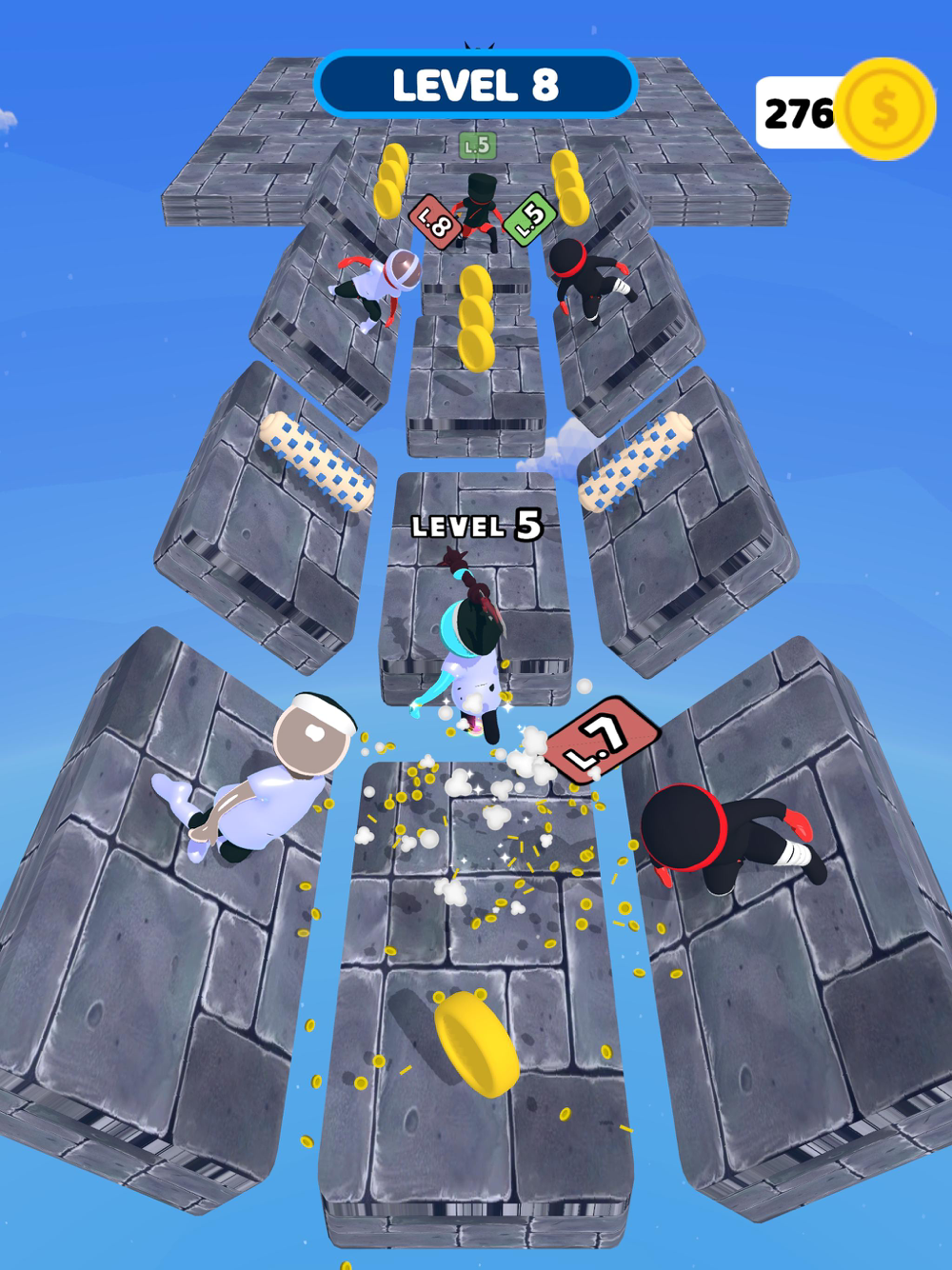Twist the platform and defeat the enemies. Defeat the enemies as much as you can level up and try to reach the final.Don't hit the obstacles and pay attention to the platform gaps, collect the gold.