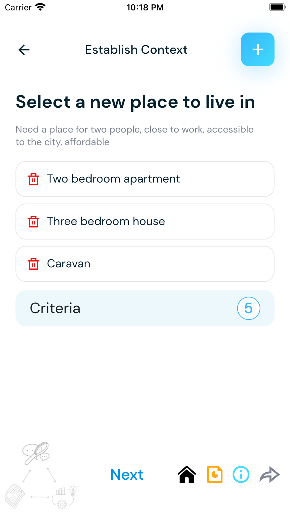 Supporting methodical steps to significant decisions. Applying criteria-based processes. Clarifying context, identify critical factors which will affect the outcome of a decision. Evaluate options accurately and establish priorities. Anticipate outcomes and see logical consequences.Navigate risk and uncertainty. Reason well in contexts requiring quantitative and qualitative analysis. The app is a support tool applying straightforward and methodical steps to help make significant decisions. Nimbly using informed, criteria-based processes - it focuses on clarifying context, in order to better evaluate options and implement plans. The app is populated with default settings, all of which can be readily tailored to meet your needs.