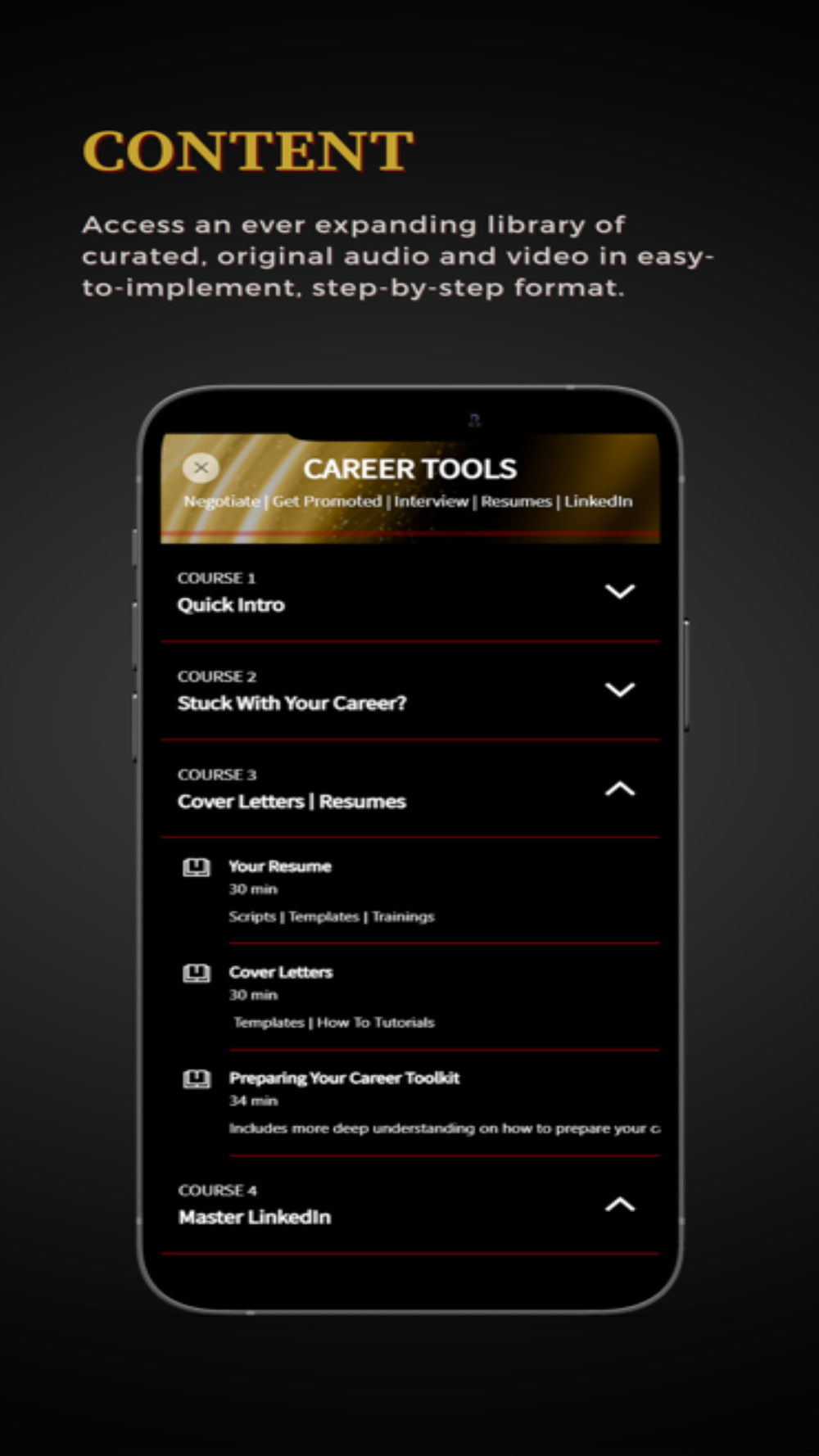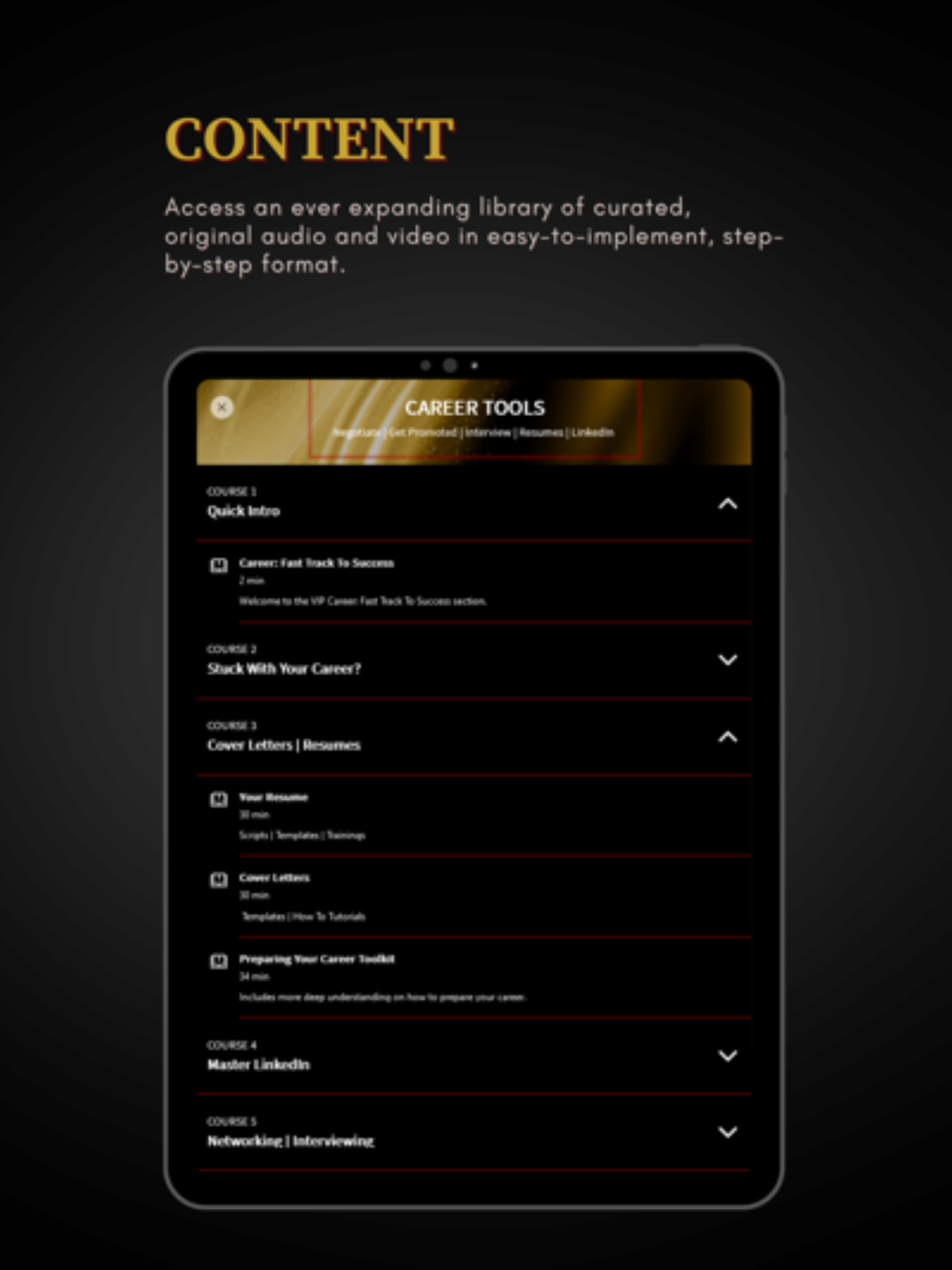 Access a growing library of curated, original content in a step-by-step, easy-to-do format.