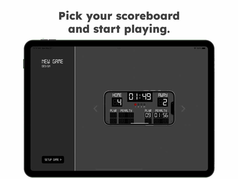 A mini-hockey scoreboard! Put this on your phone or iPad and have a timer for each period with intermission time as well. More features like shootouts coming in early 2023.