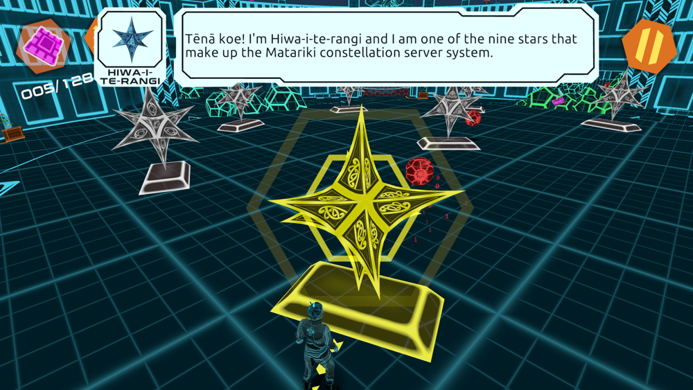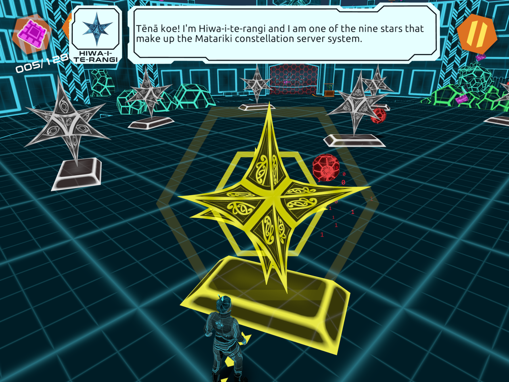 You will be guided through Tahuna by Wiremu, an AI assistant, as he helps you to restore the city hub. He will introduce you to each of the Matariki stars as you go on to restore the parts of the city they each oversee. Along the way you'll learn basic coding concepts and discover pieces of Māori culture and history.