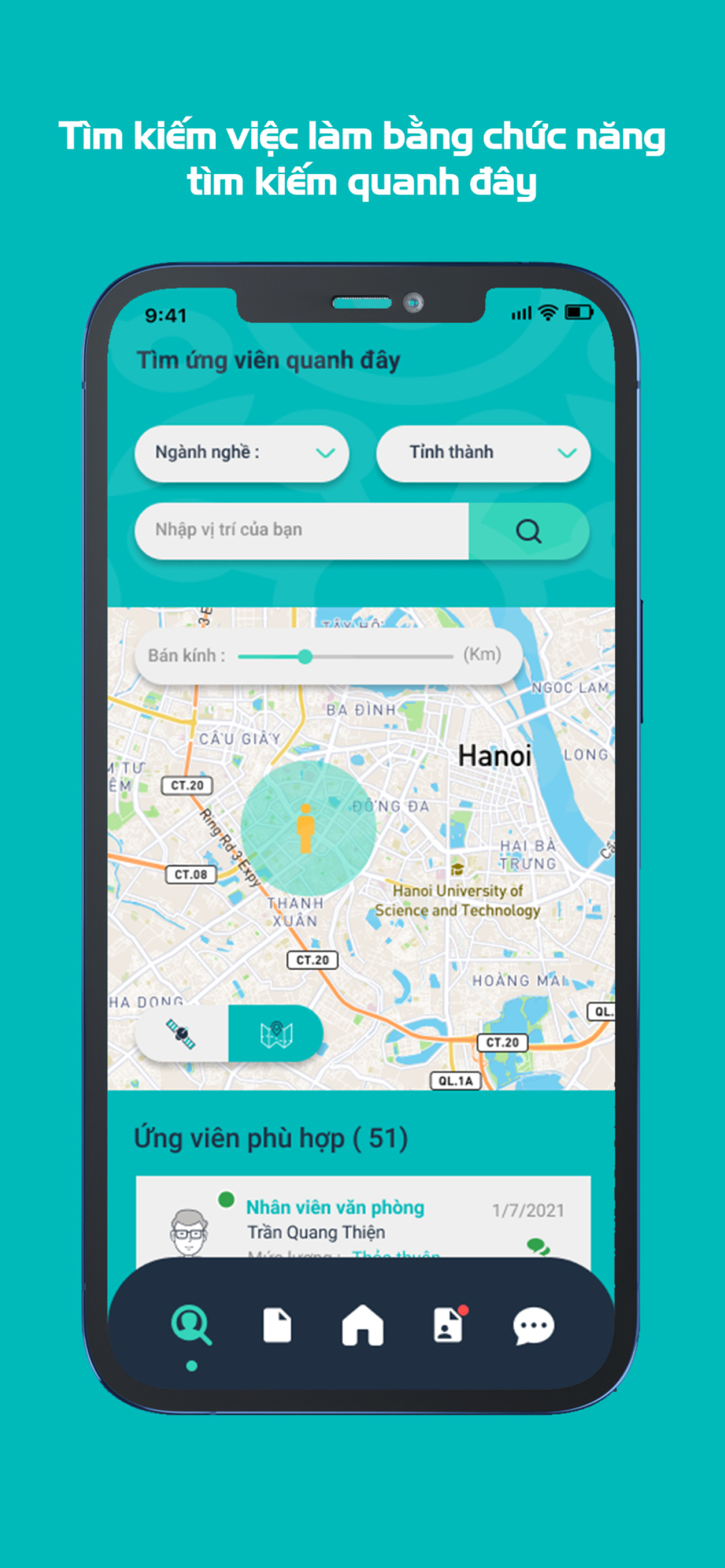- Tính năng tìm kiếm theo địa điểm giúp bạn có thể chọn lọc các tin tuyển dụng để phục vụ cho nhu cầu tìm việc 24h, công việc gần nhà hay theo địa điểm mong muốn.