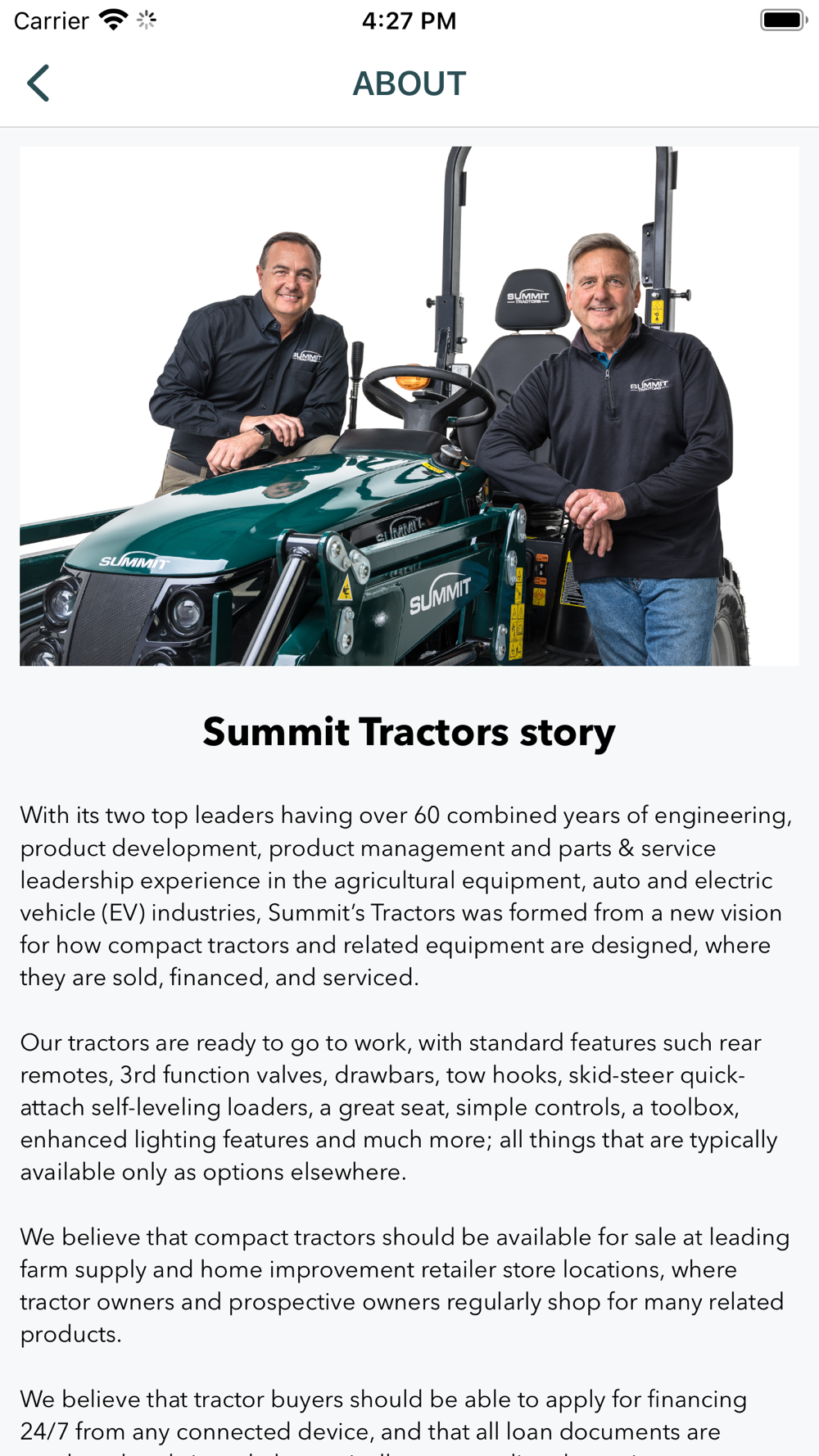 Summit Tractors Connect allows users to get connected to resources from Summit Tractors, including operator and service manuals, parts catalogs, maintenance guides, troubleshooting, warranty information and much more. Find retail locations that sell Summit Tractors as well as find Summit Tractors Service Dealers near you.