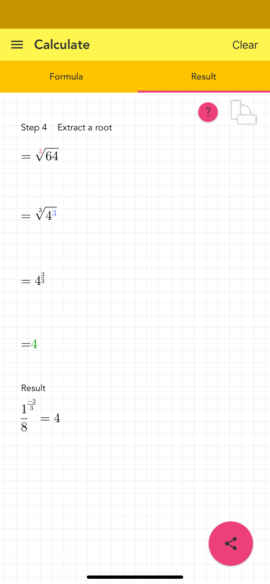 Decimals, fractions and negative values are supported. The solution is shown step by step. All calculations are stored in the history. The final solution can be shared.