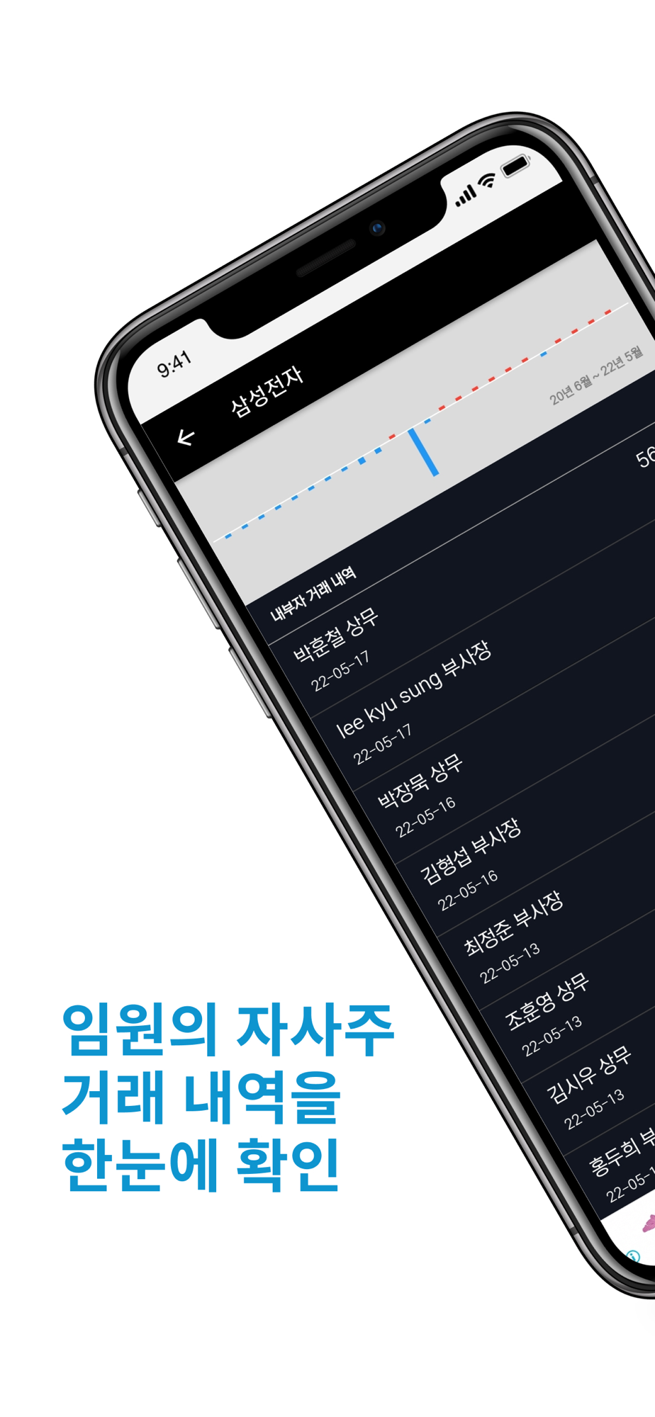 임원의 자사주 매매 내역을 쉽게 확인하는 어플리케이션입니다. 회사 내부자인 임원 및 이사의 거래 내역을 확인하여 주식 투자의 아이디어를 얻을 수 있습니다.