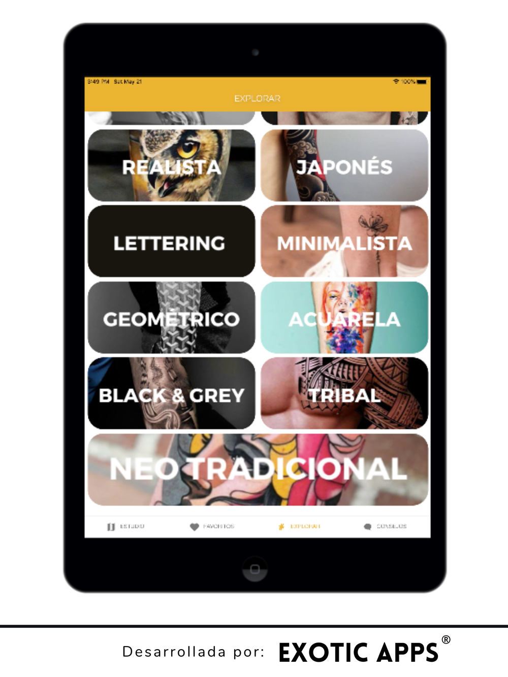 Explore diferentes opciones de tatuajes y guarde sus favoritos: busque por estilos, diseños y mas.